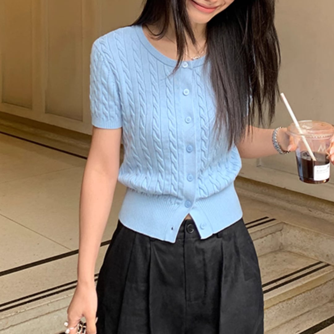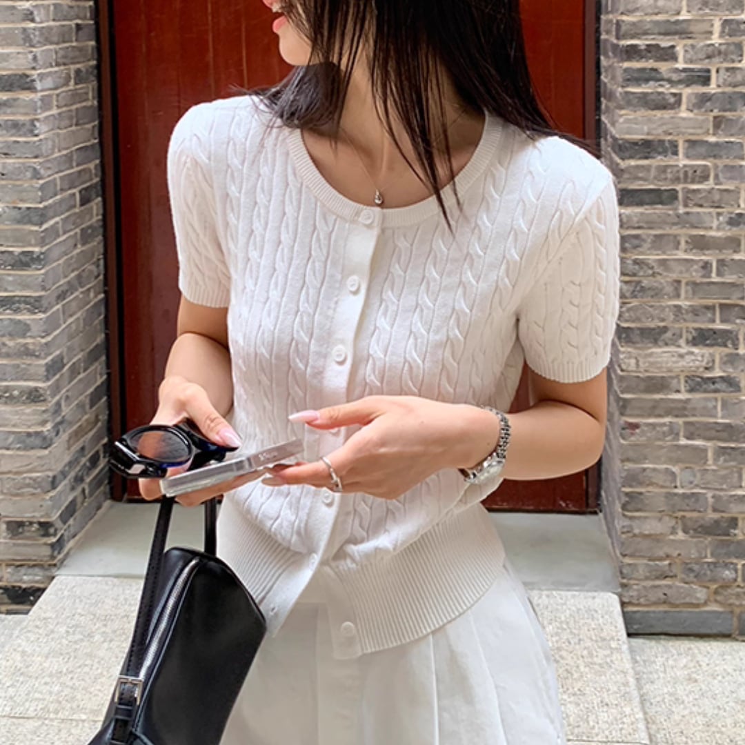 ケーブル半袖ニットカーディガン r001241