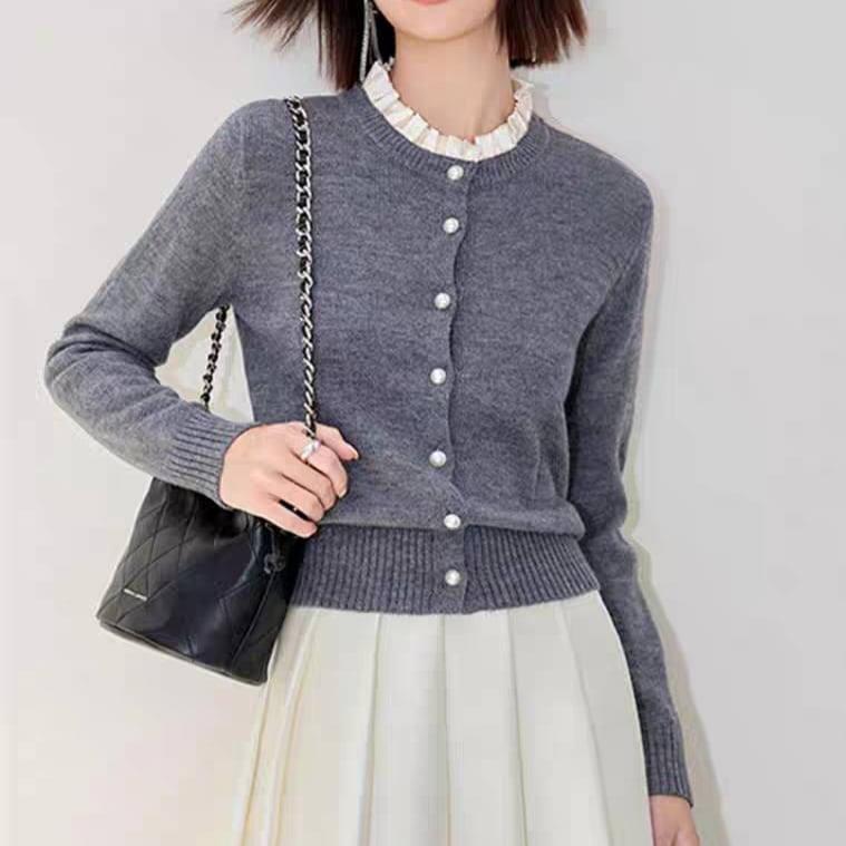 フリルネックカーディガン r001241