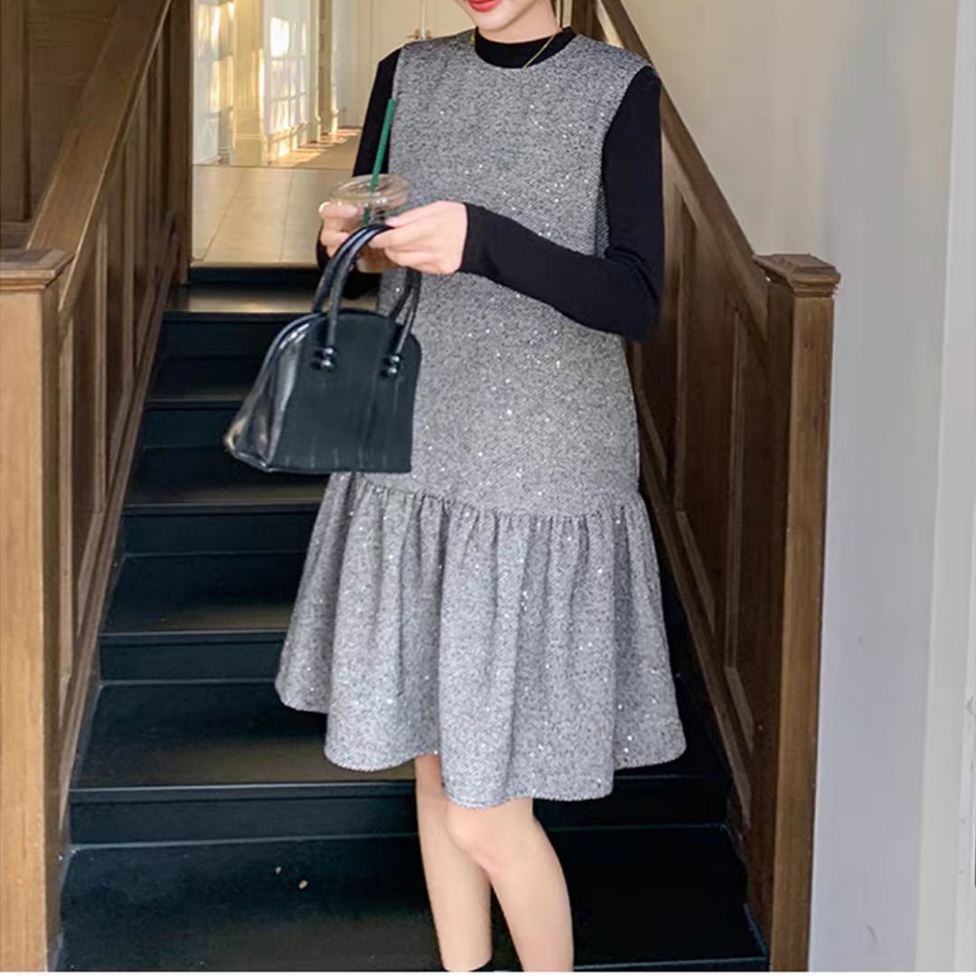 ツイードフレアース切替ワンピース r001246