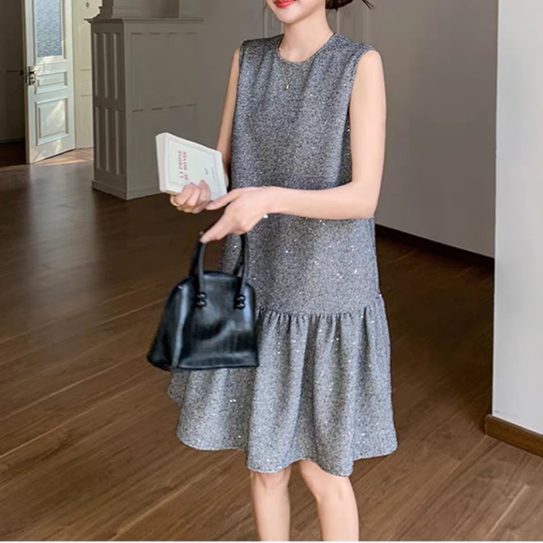 Aラインシルエットが美しい、ツイード素材のフレアスカートワンピースです。ウエストから裾にかけて広がるフレアが、女性らしい優美な印象を与えます。一枚で着映えするデザインは、忙しい朝にも最適。様々なシーンで活躍してくれる、着回し力の高いアイテムです。