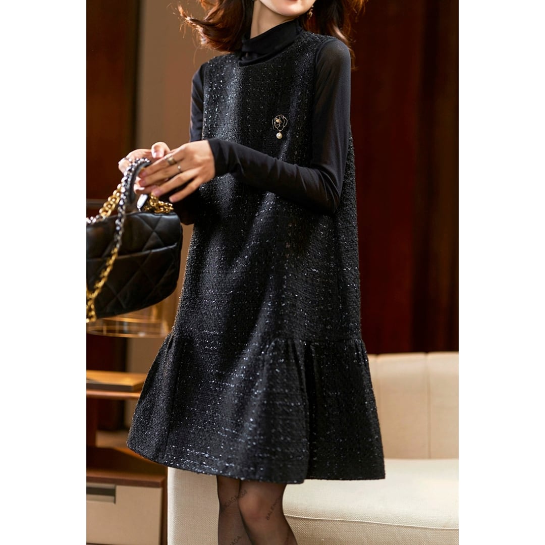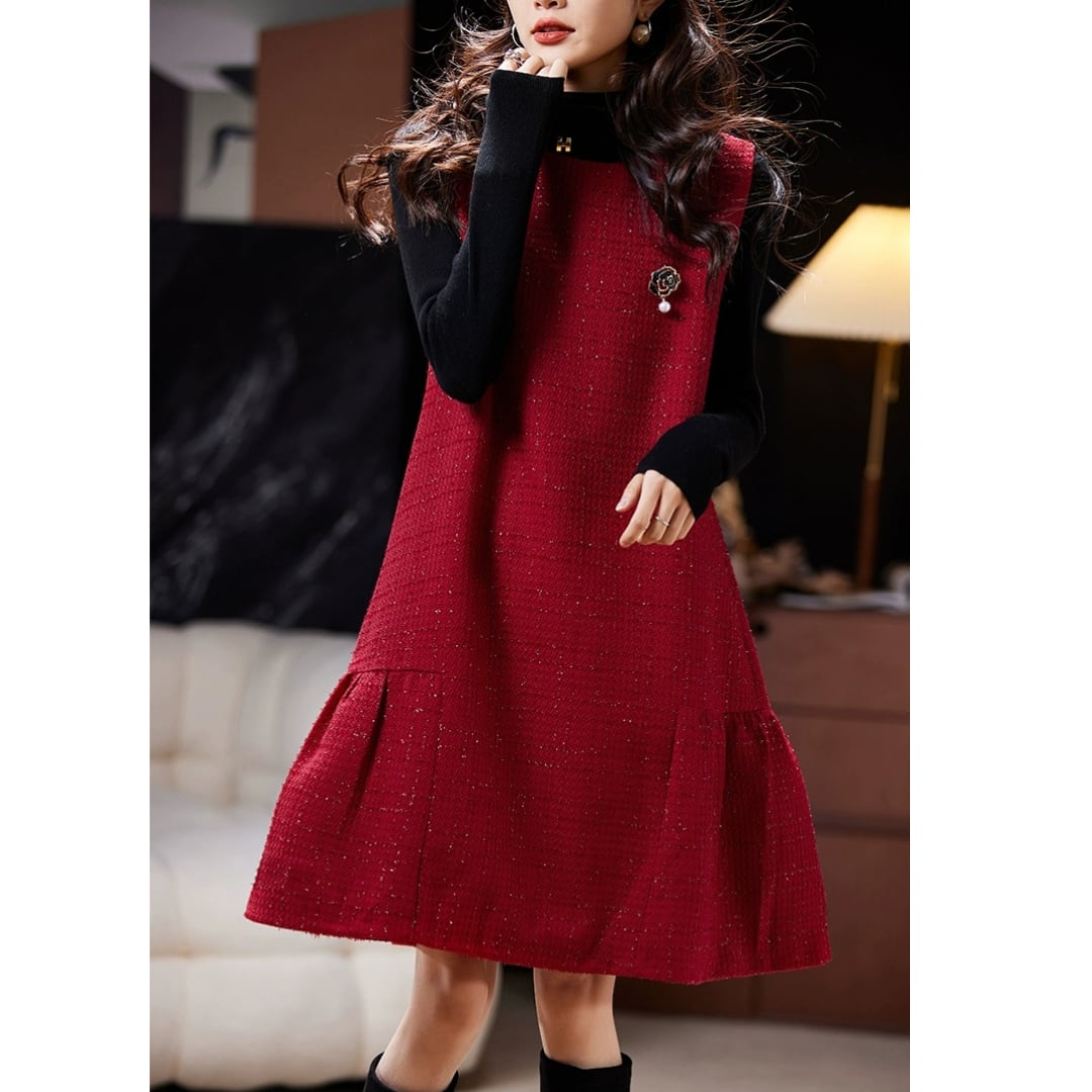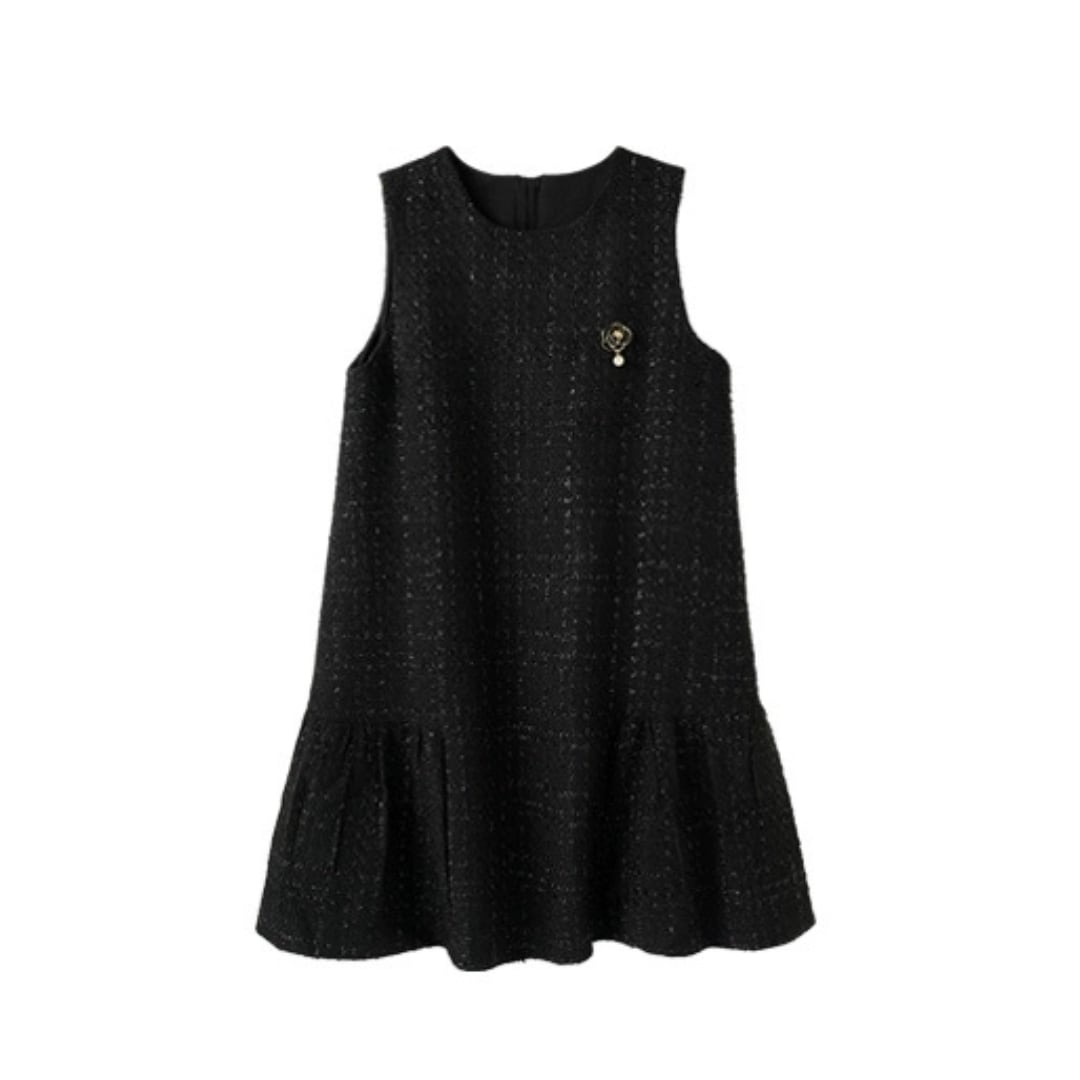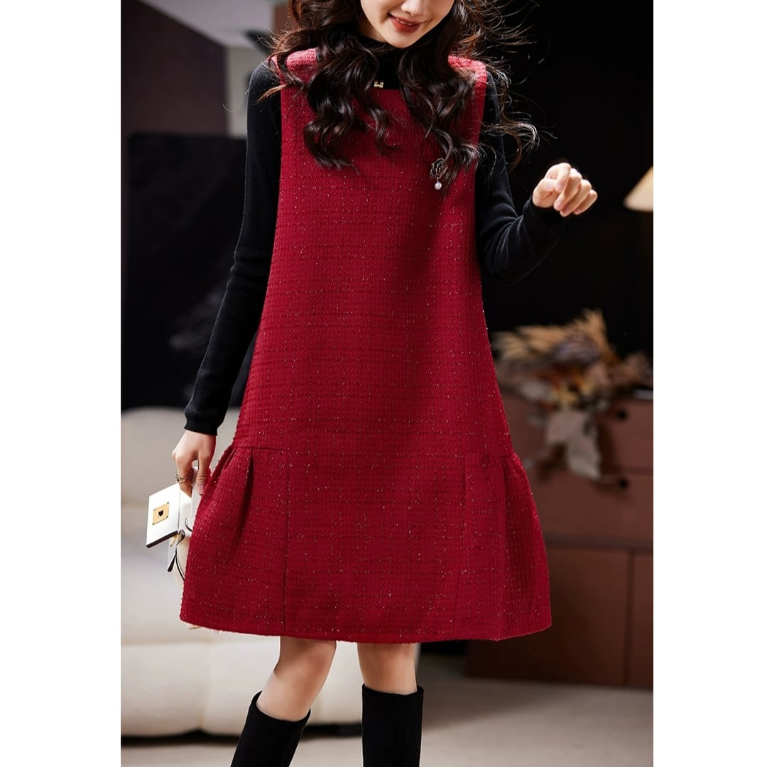 ウエストから裾にかけて広がるフレアデザインが、女性らしい優雅さを演出するワンピース。上品なツイード素材が洗練された印象を与え、様々なシーンで活躍します。