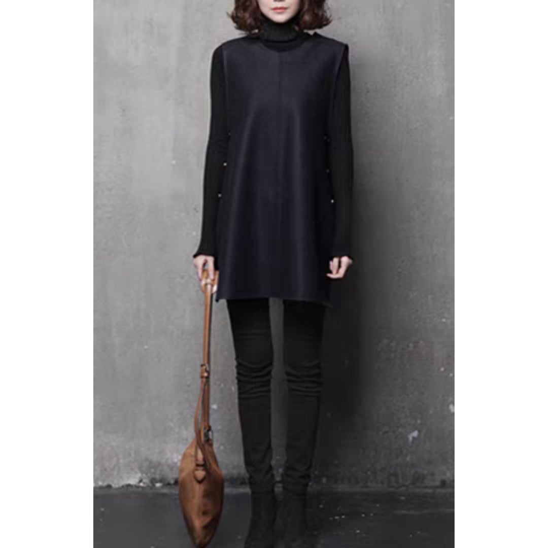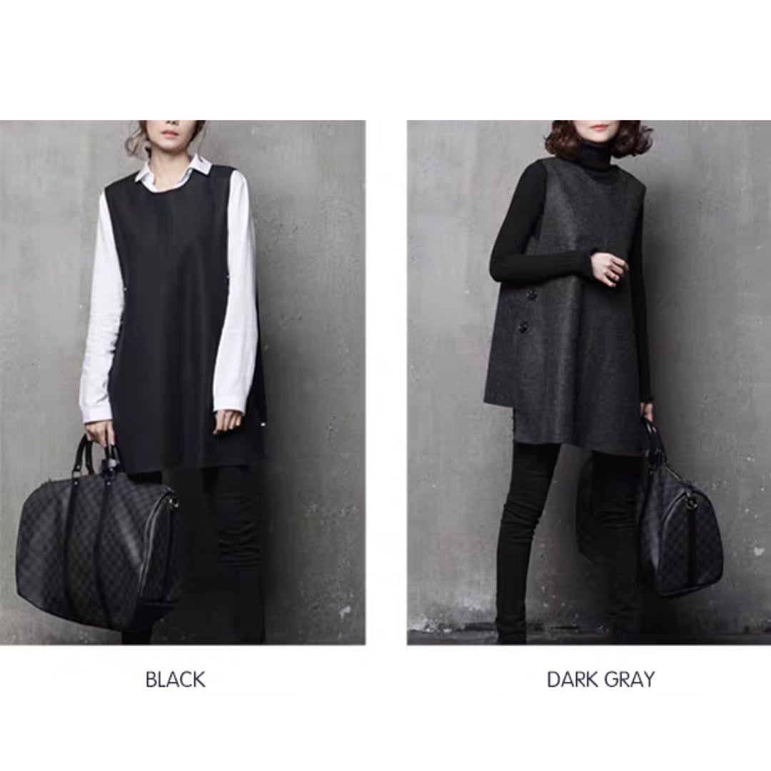サイドのボタンデザインが可愛いノースリーブAラインベスト。
