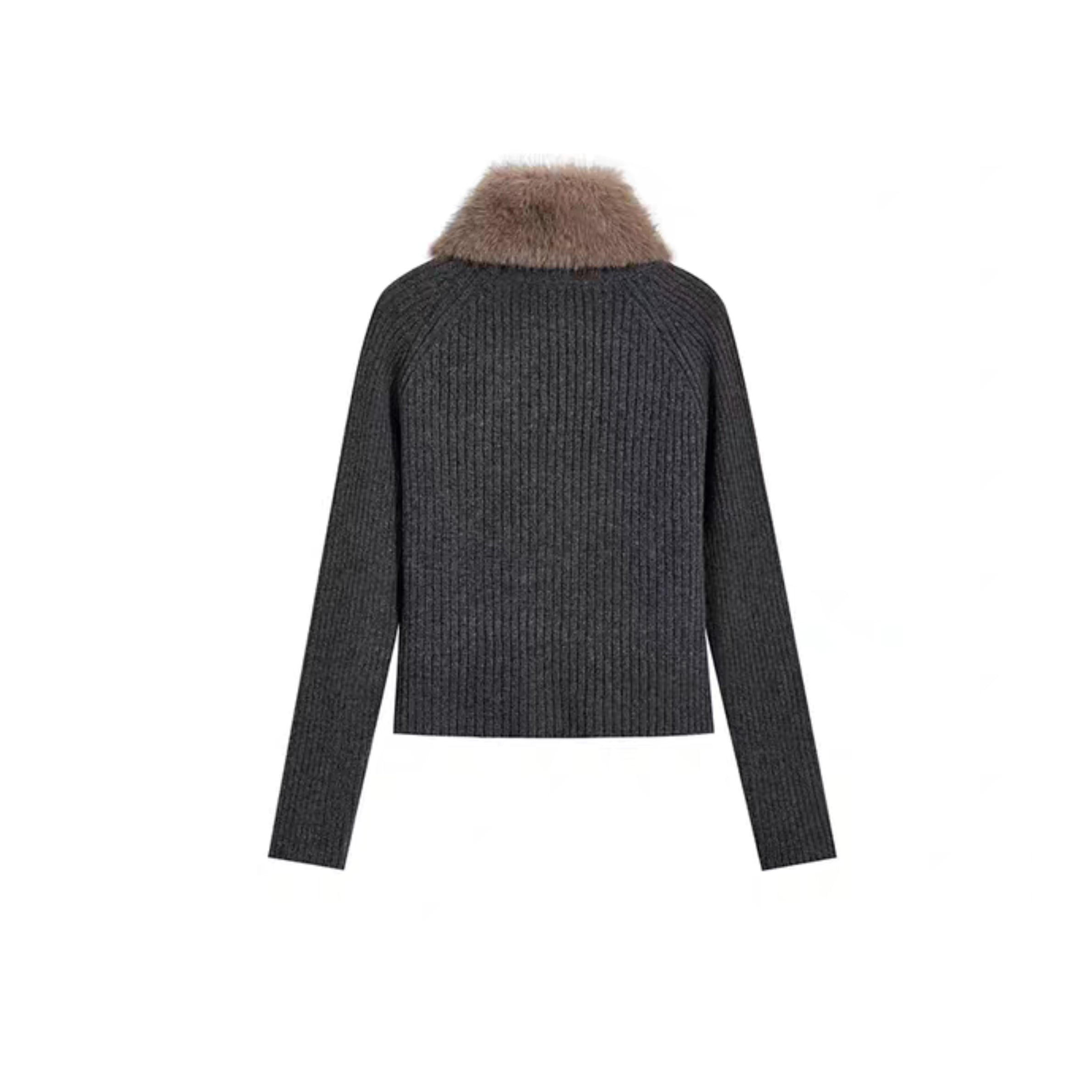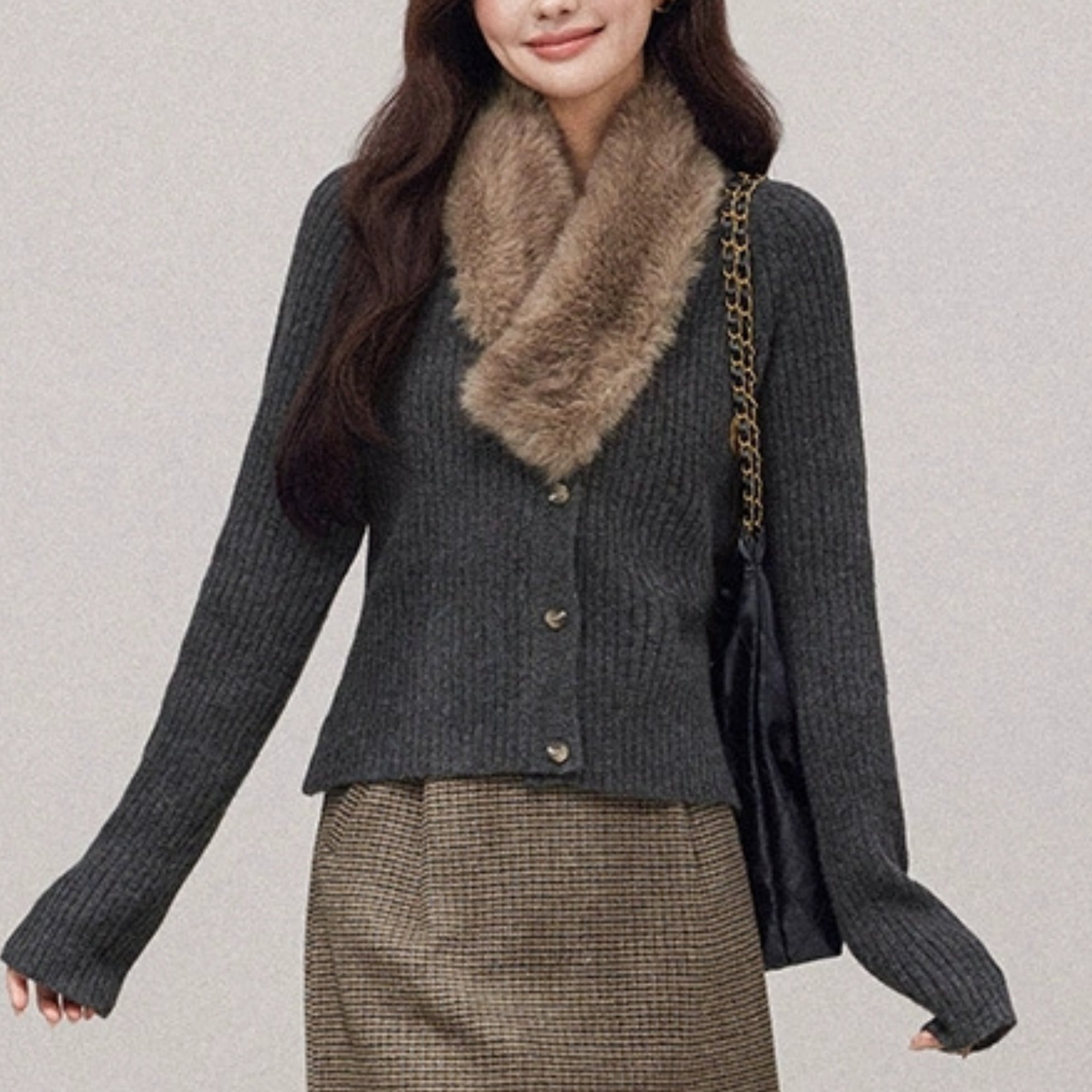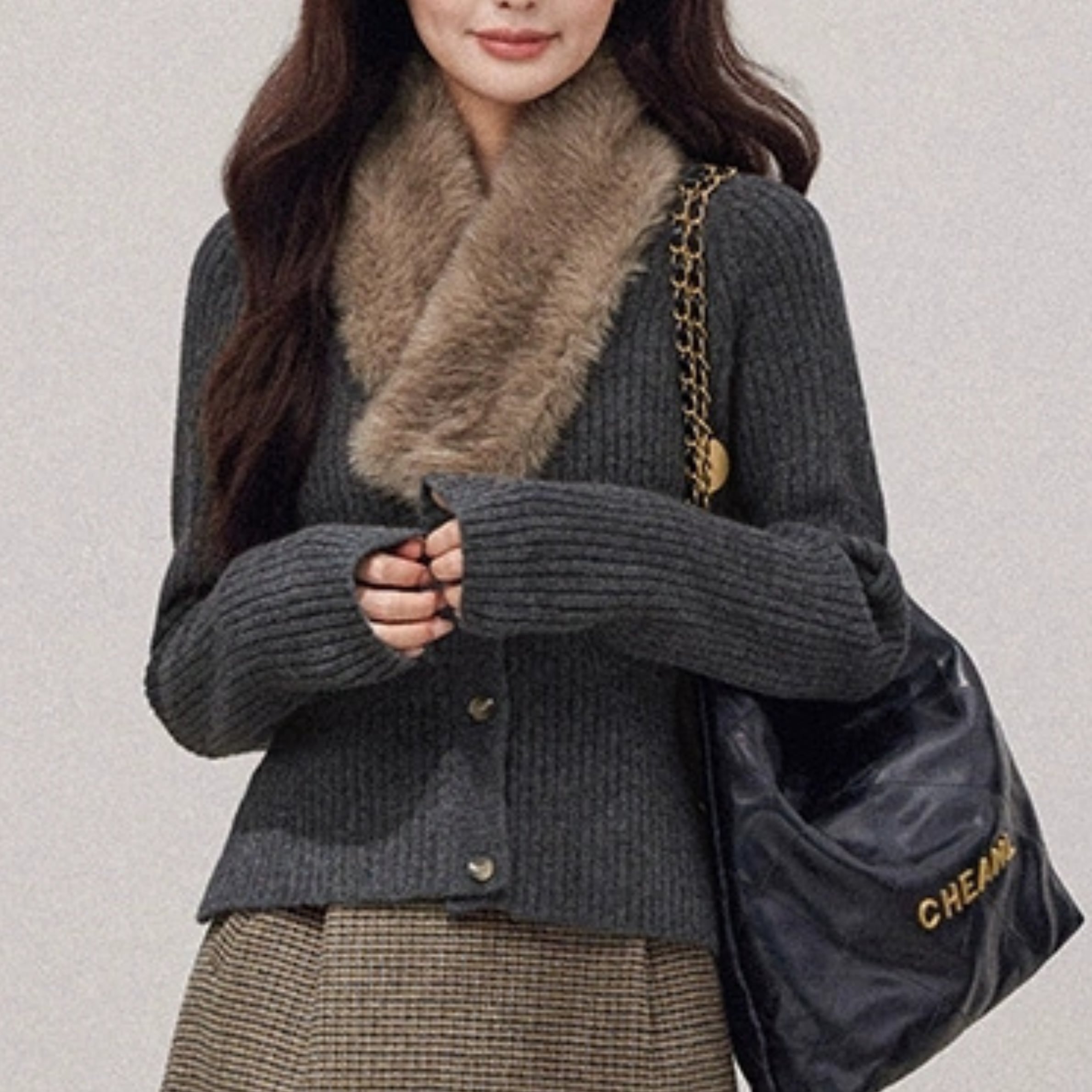 様々な表情を見せてくれるニットカーディガン。フェイクファーストール付きで着こなしの幅が広がります。