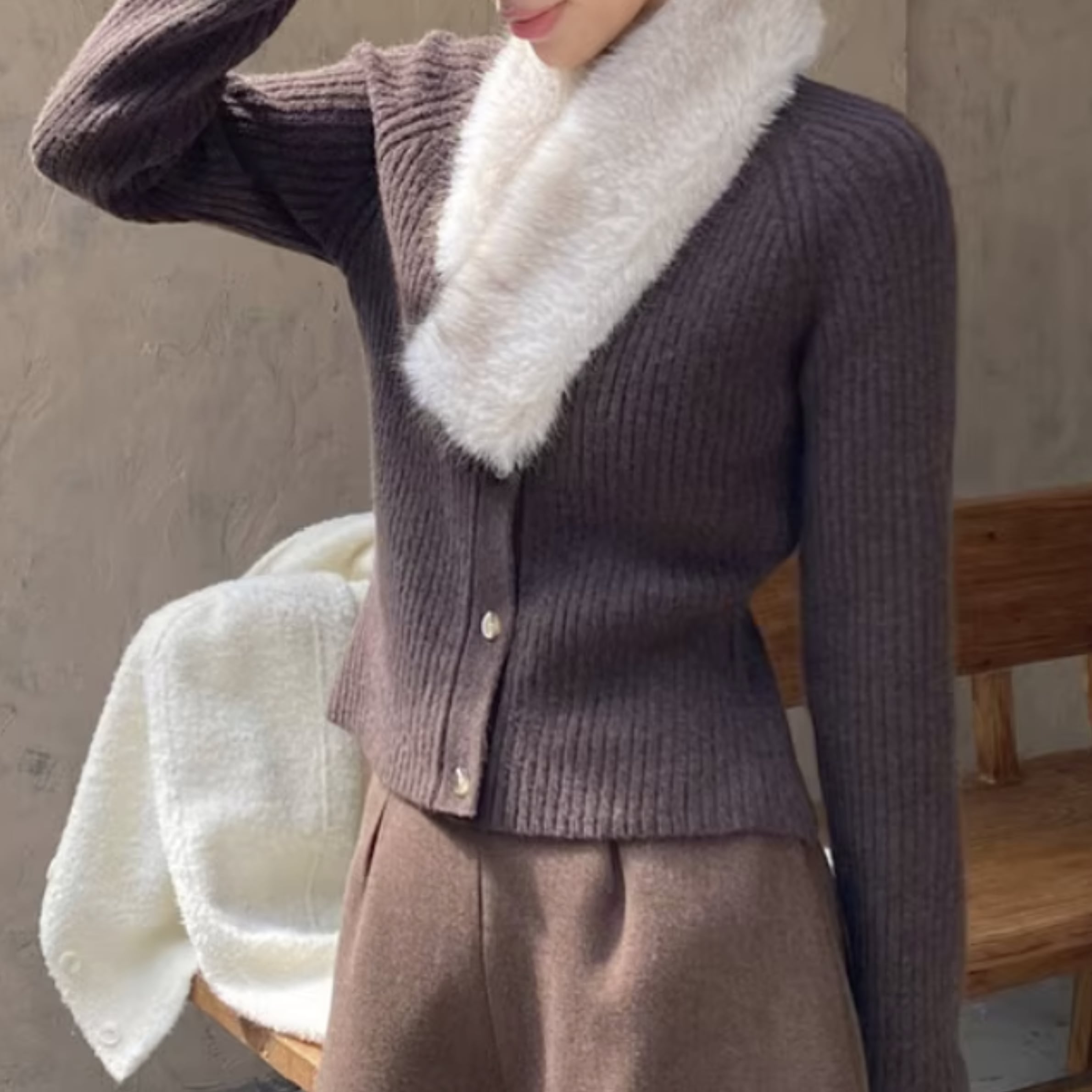 長袖リブカーディガン(フェイクファーショール付き) r001273