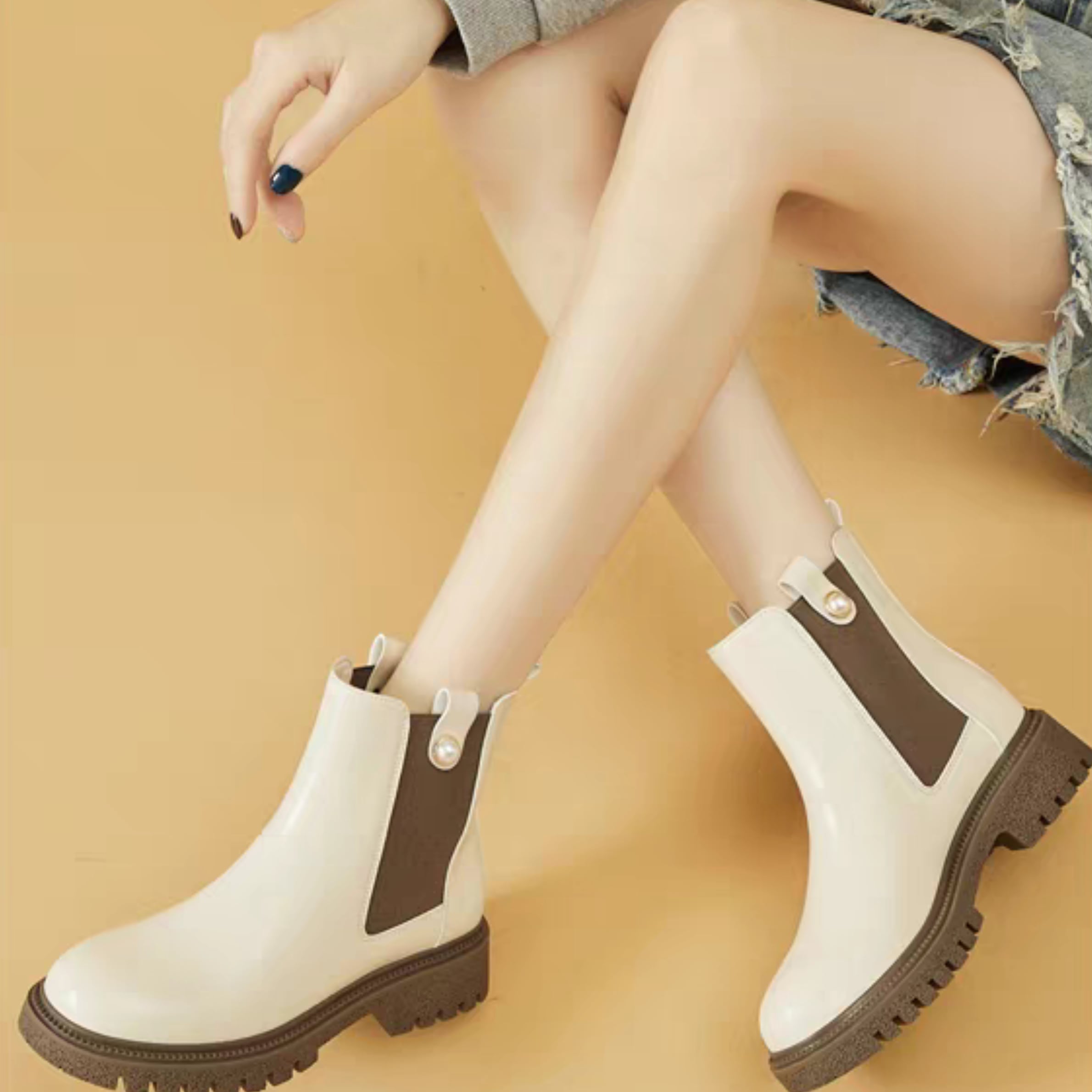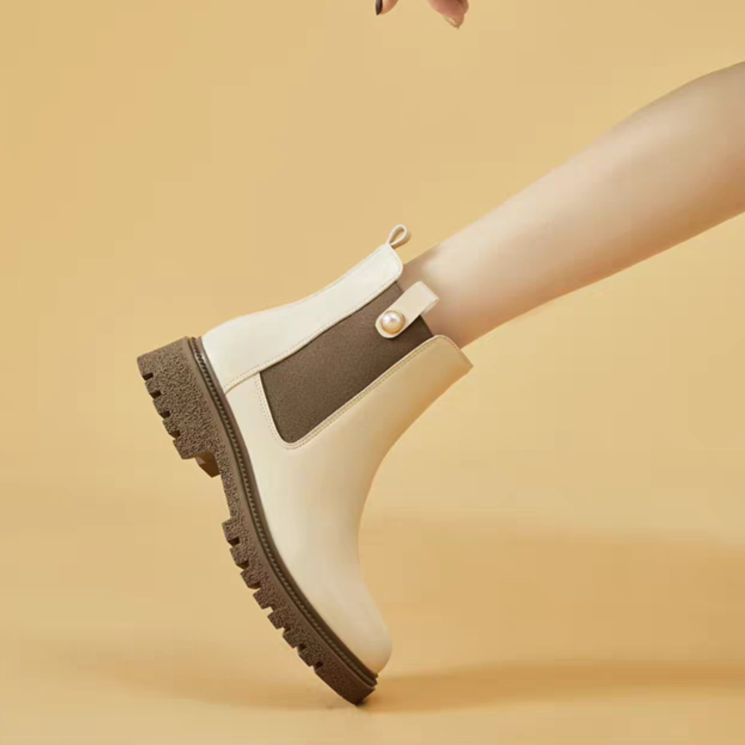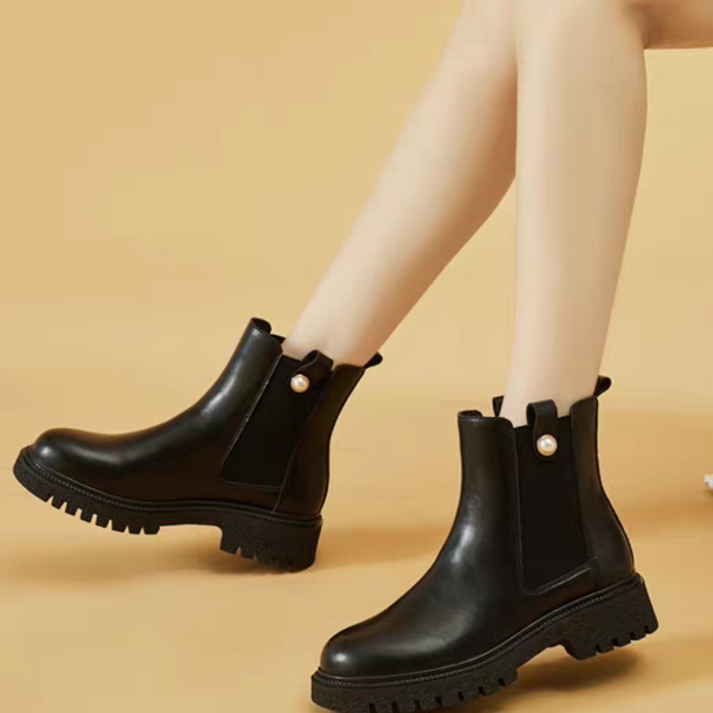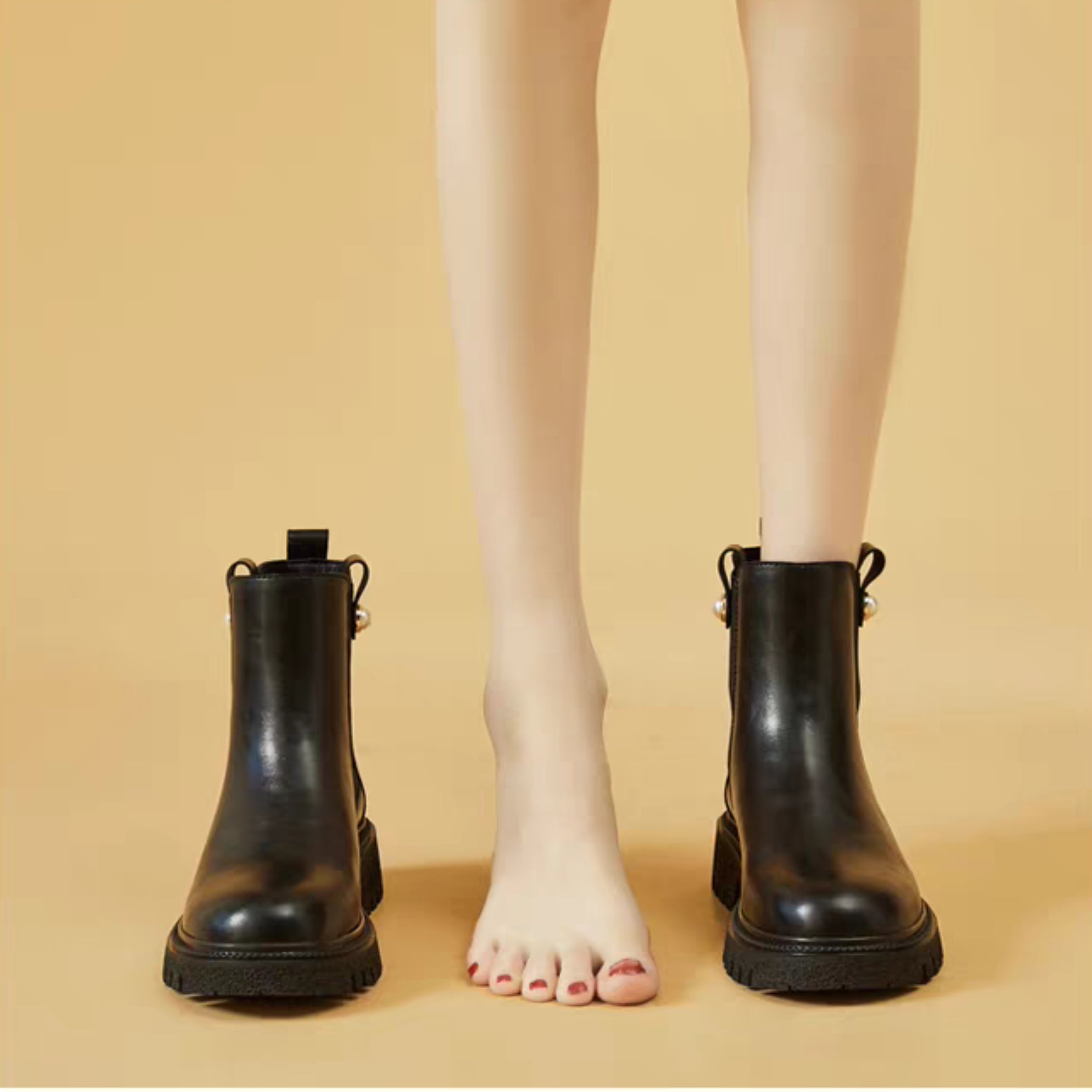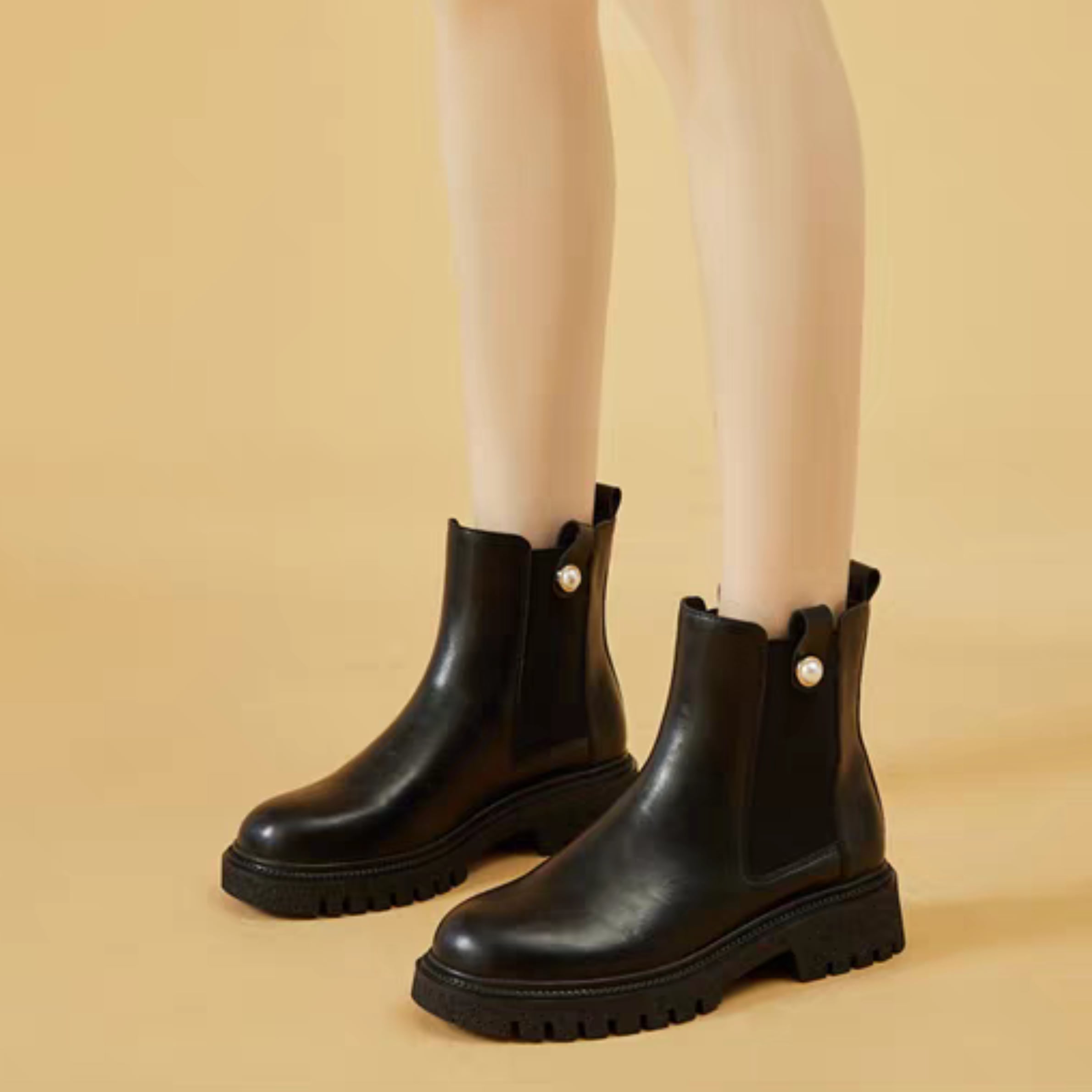 サイドゴアデザインで、脱ぎ履きがスムーズなショートブーツ。カジュアルにもきれいめにも合わせやすいのが魅力。