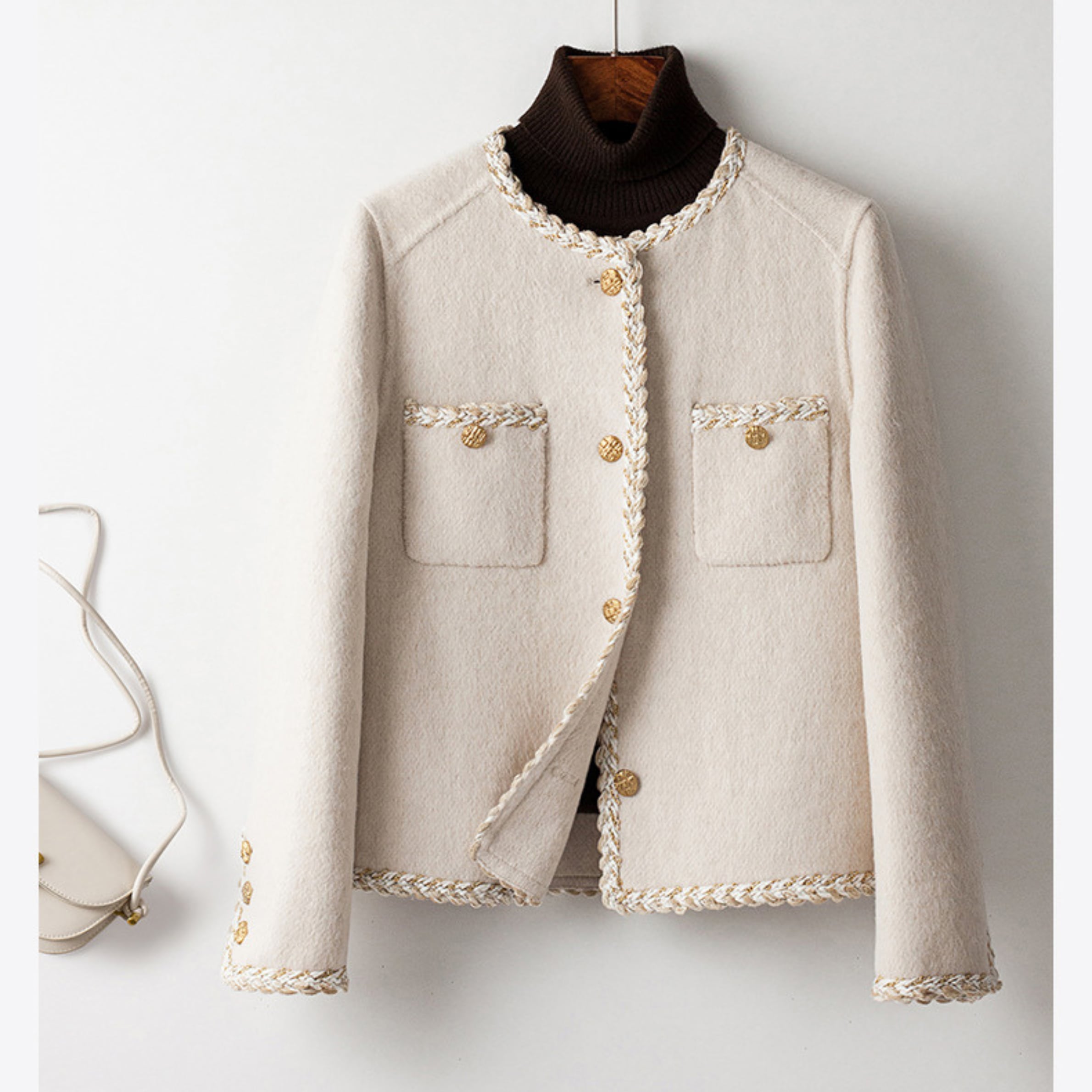 カジュアルにもエレガントにも着こなせるジャケット。ブレードトリムと細部までこだわったデザインがシンプルなスタイルに華やかさをプラスします。ワンピースやブラウスと合わせて、上品な着こなしを楽しんで。