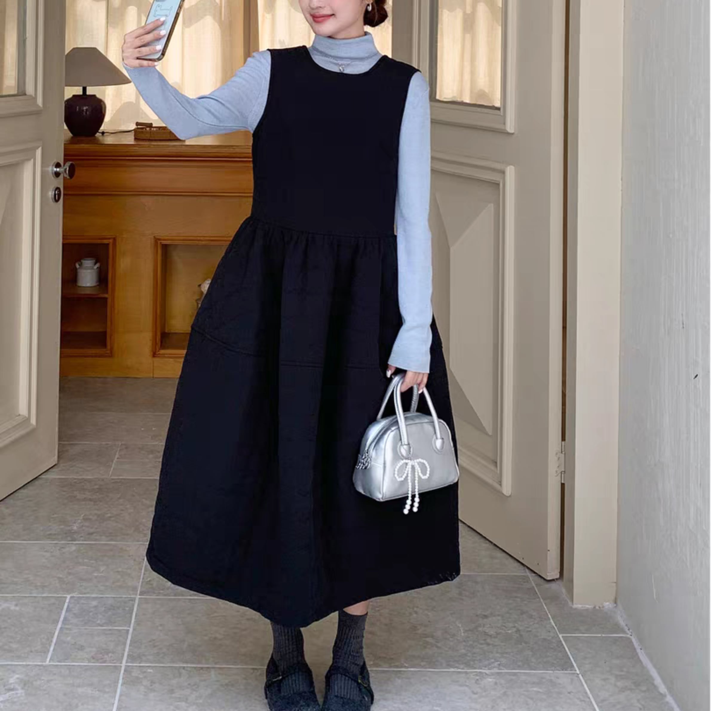 バックリボンキルティングジャンパースカート r001277
