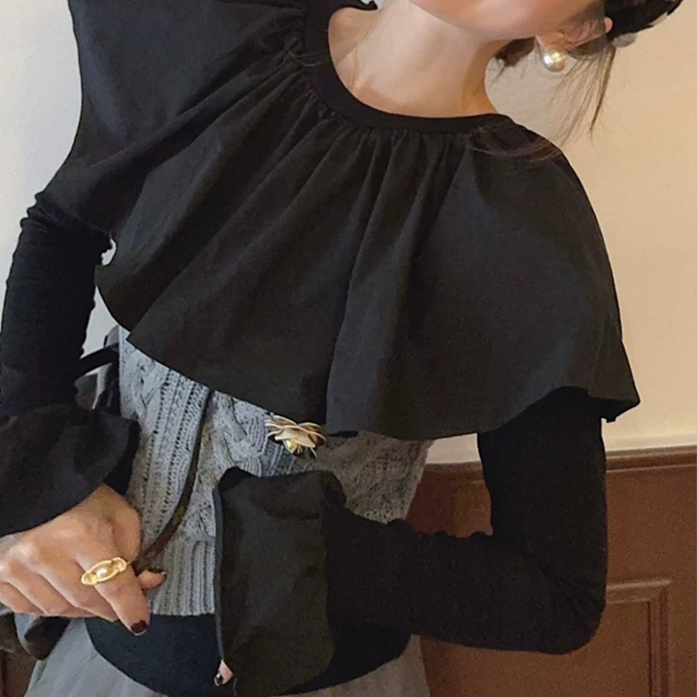 フリル 長袖 カットアウト ディテール トップス r001284