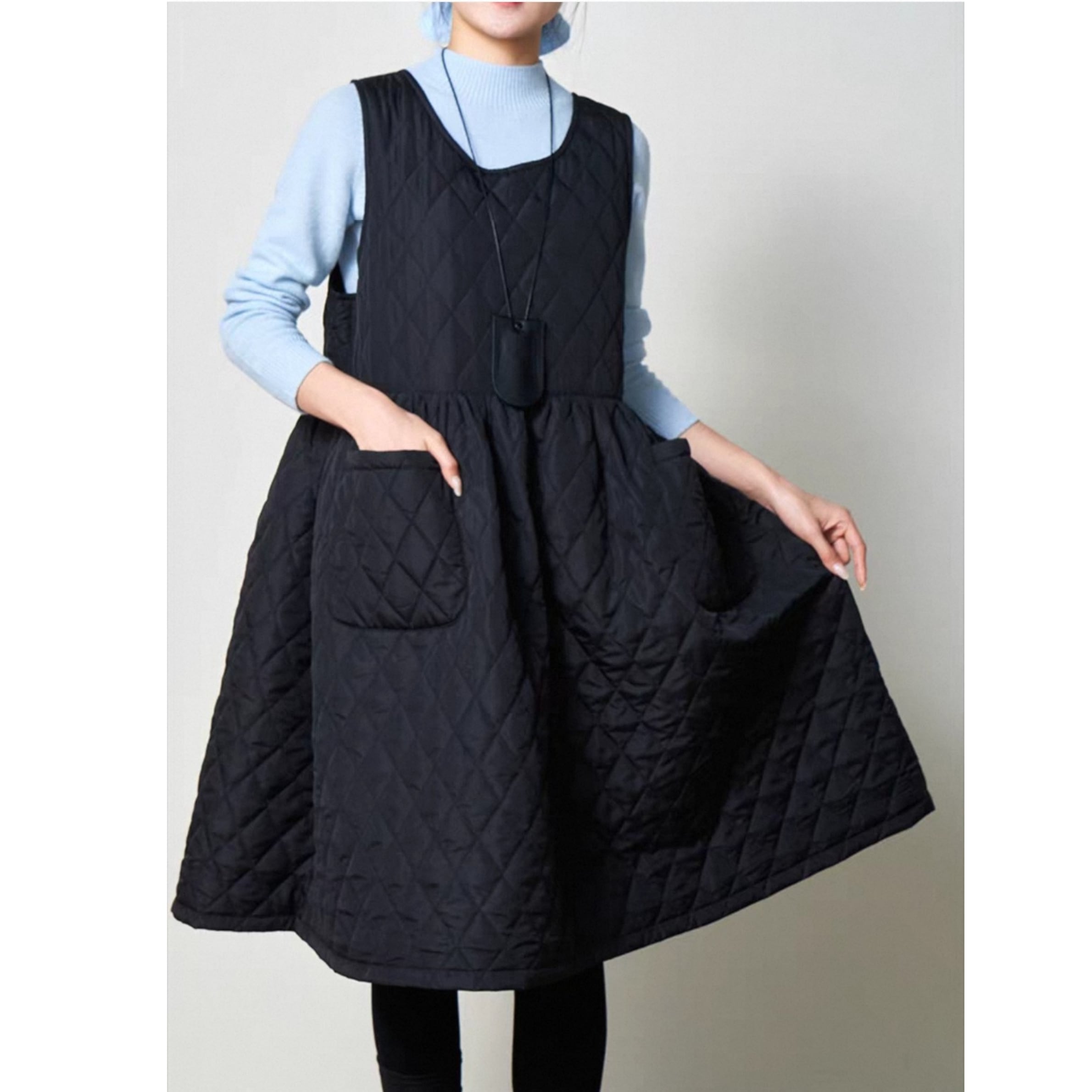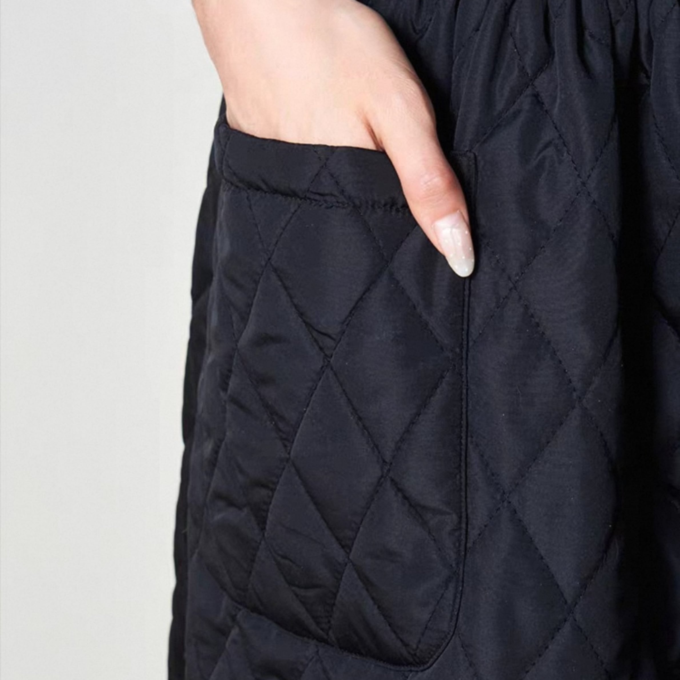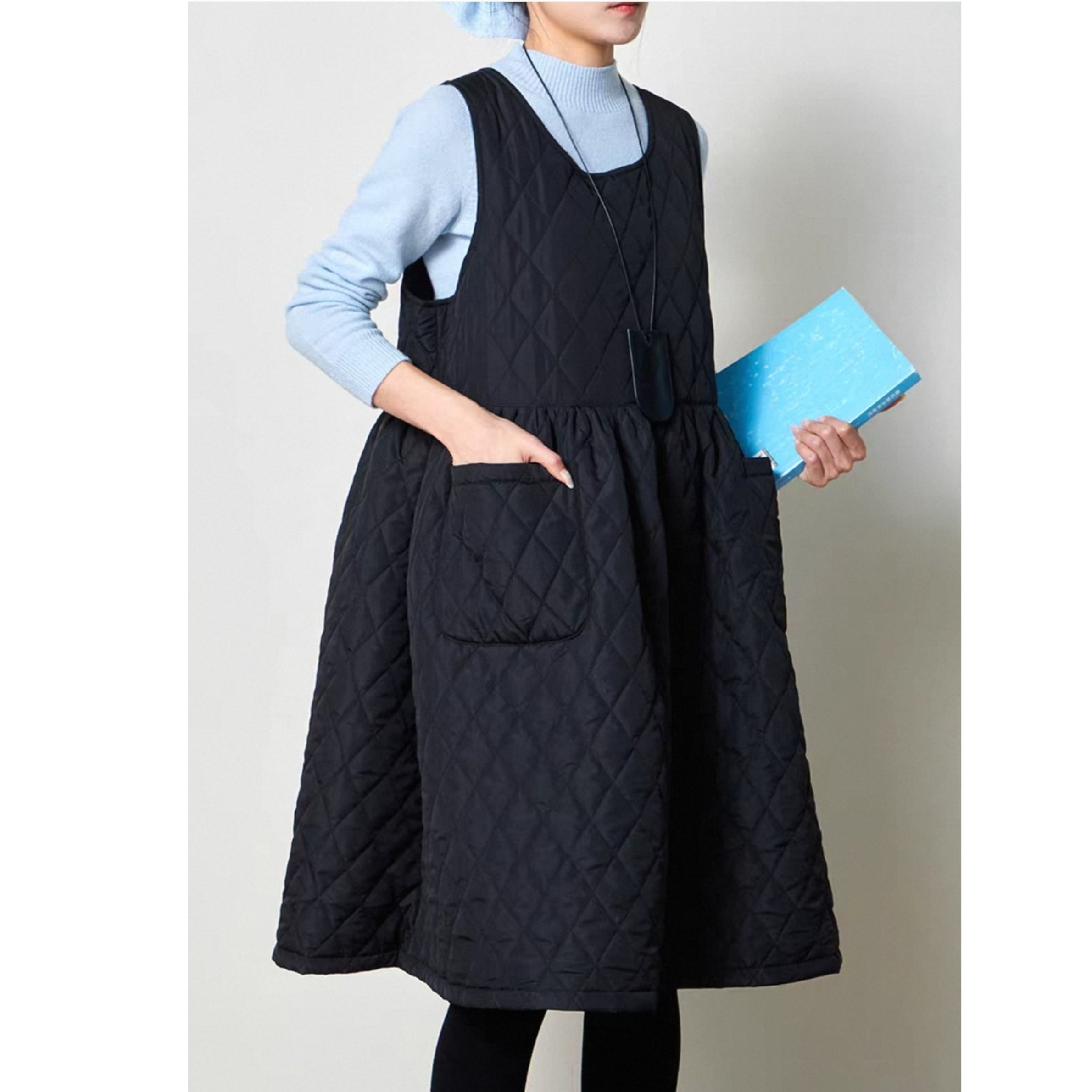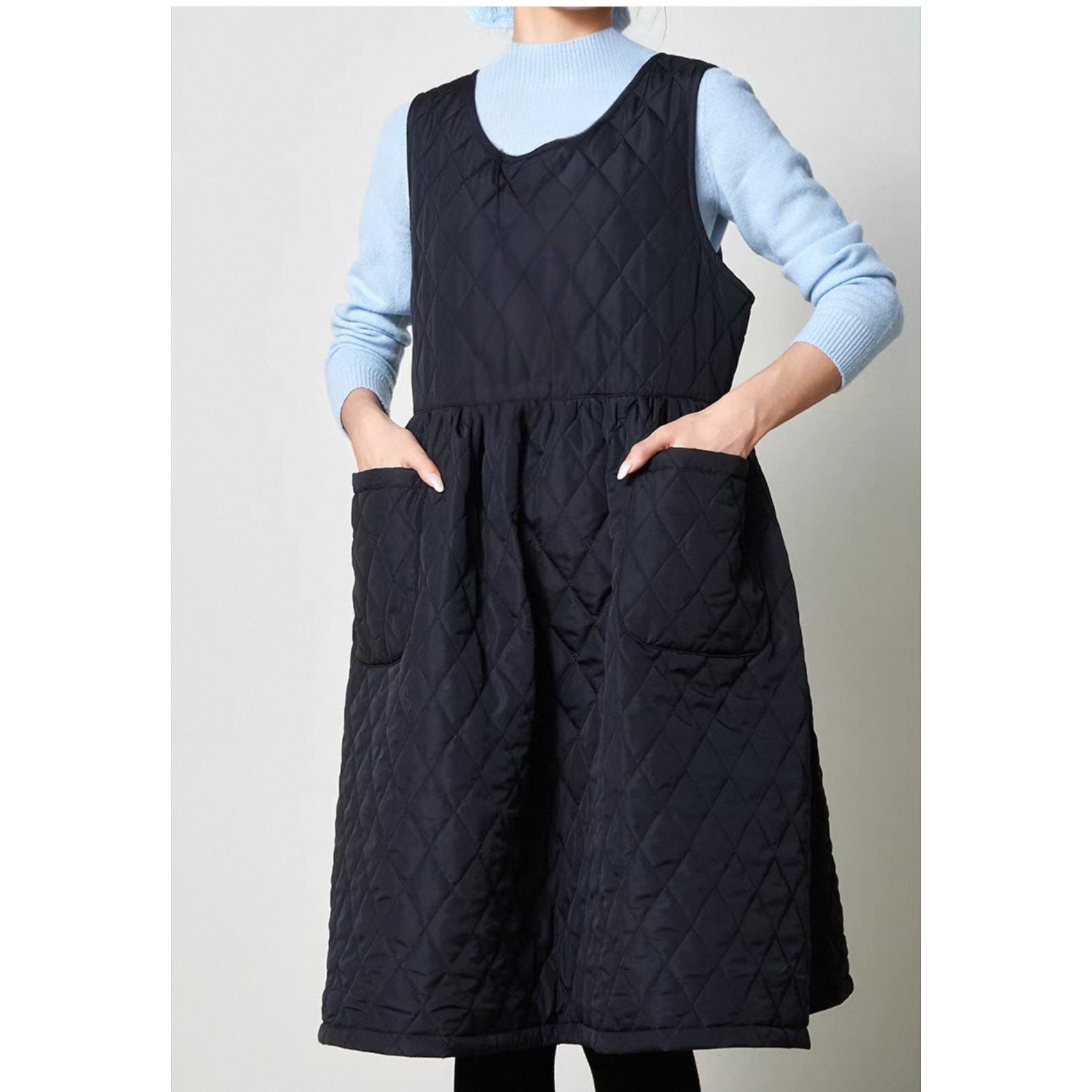 キルティングデザインが目を引くジャンバースカート。バックリボンがさりげないアクセントになり、普段使いにも最適です。中にカットソーやニットを合わせれば、ロングシーズン着回せるのも魅力です。