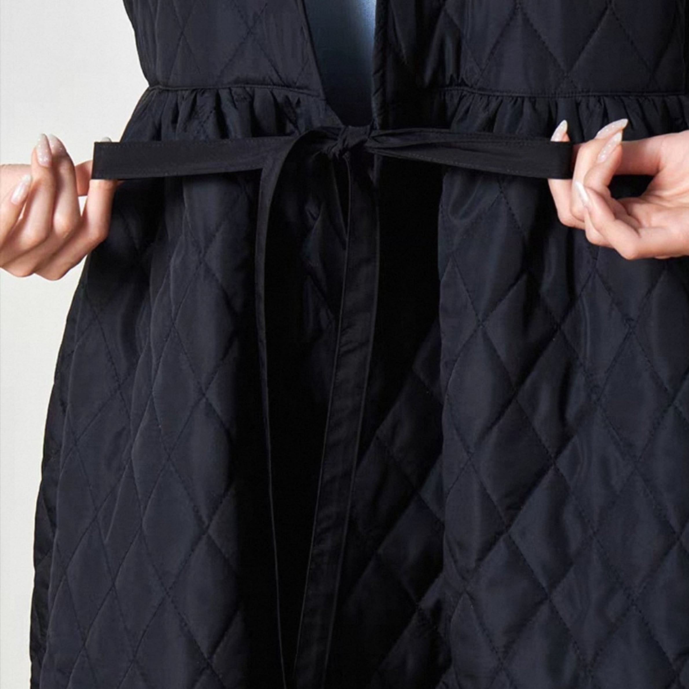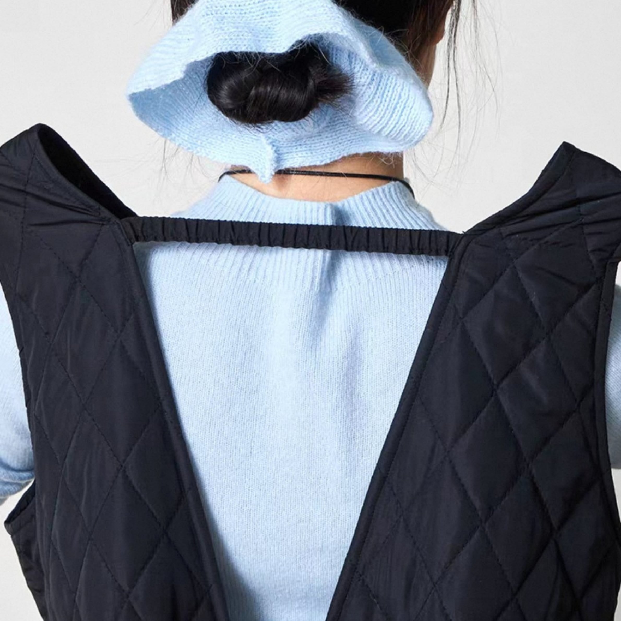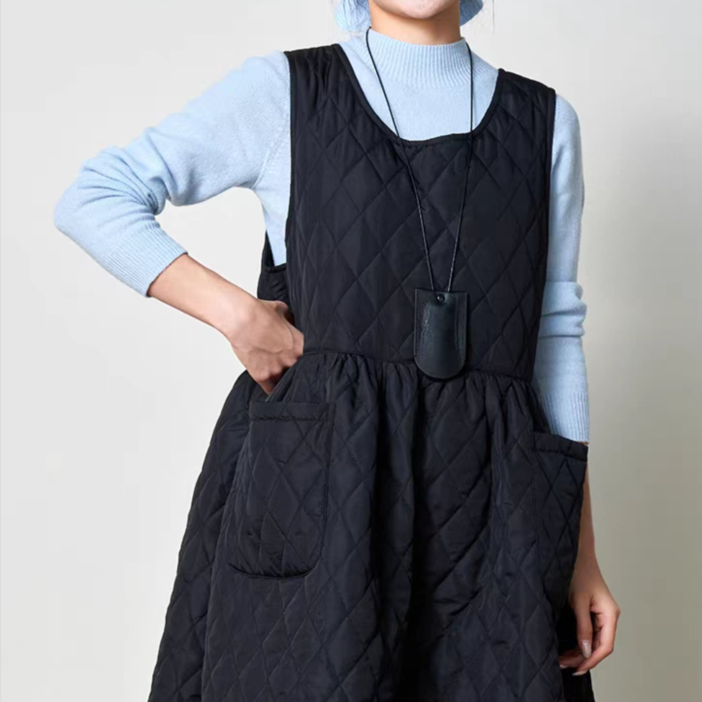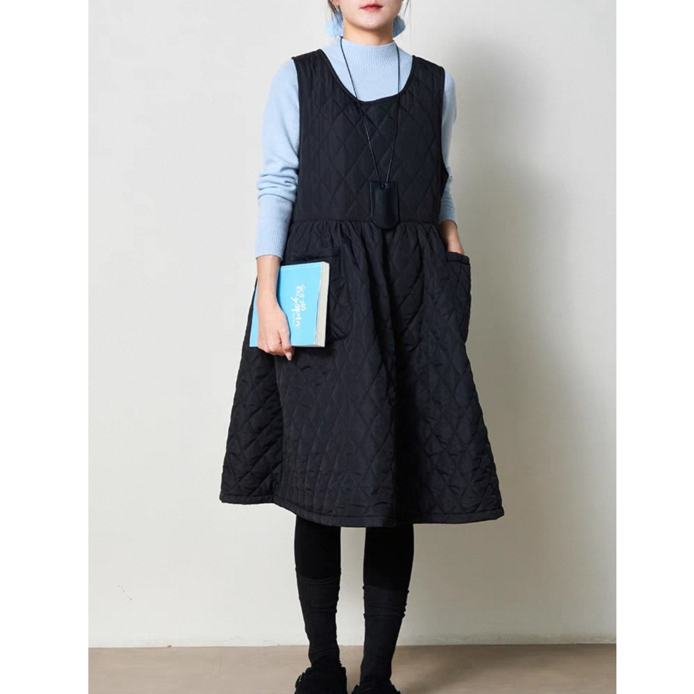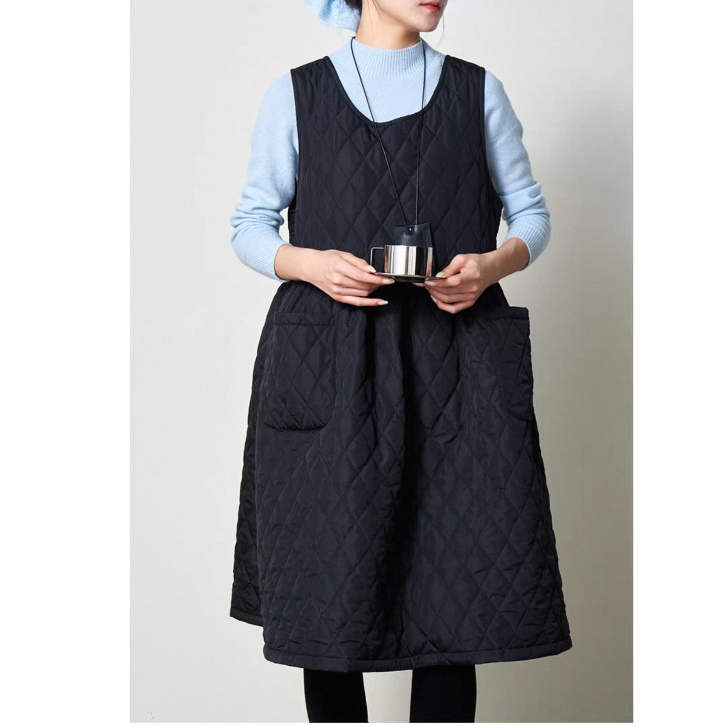 キルティングデザインが目を引くジャンバースカート。バックリボンがさりげないアクセントになり、普段使いにも最適です。中にカットソーやニットを合わせれば、ロングシーズン着回せるのも魅力です。