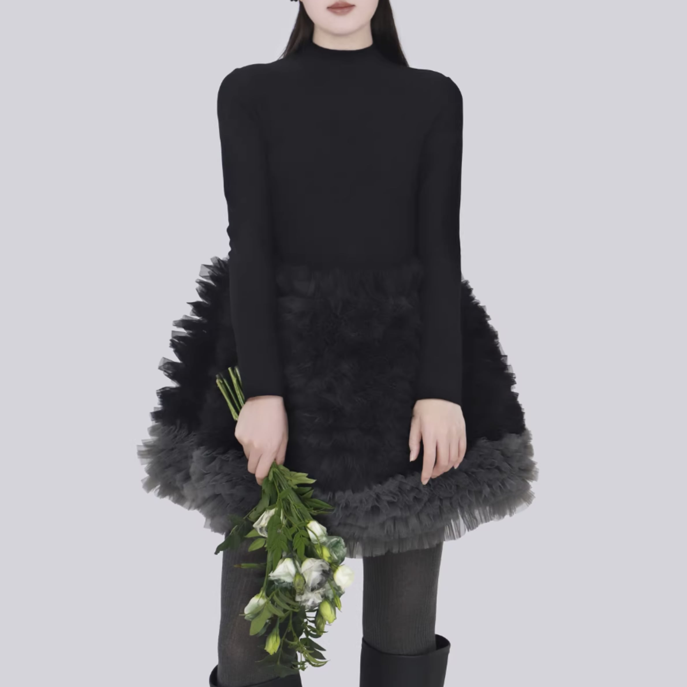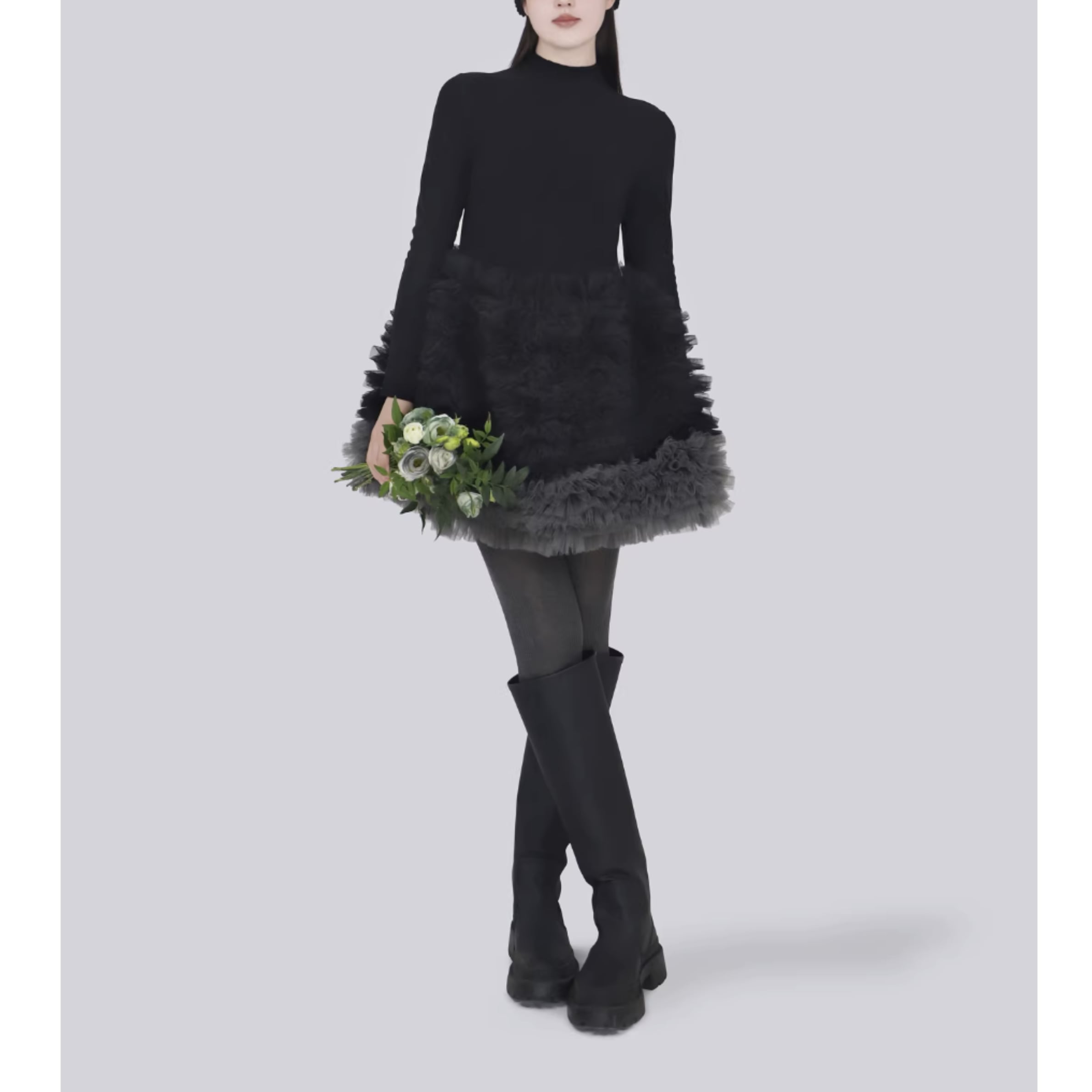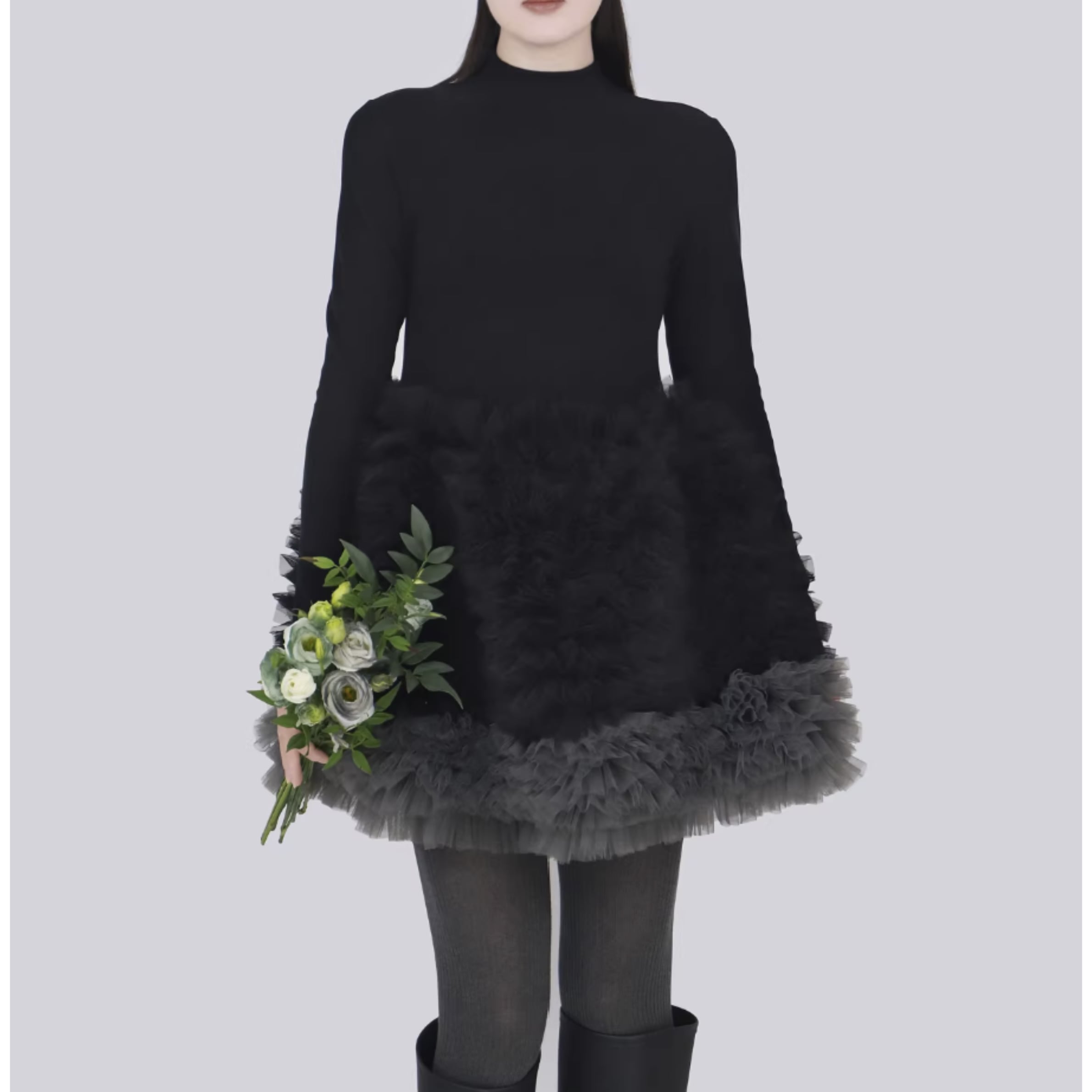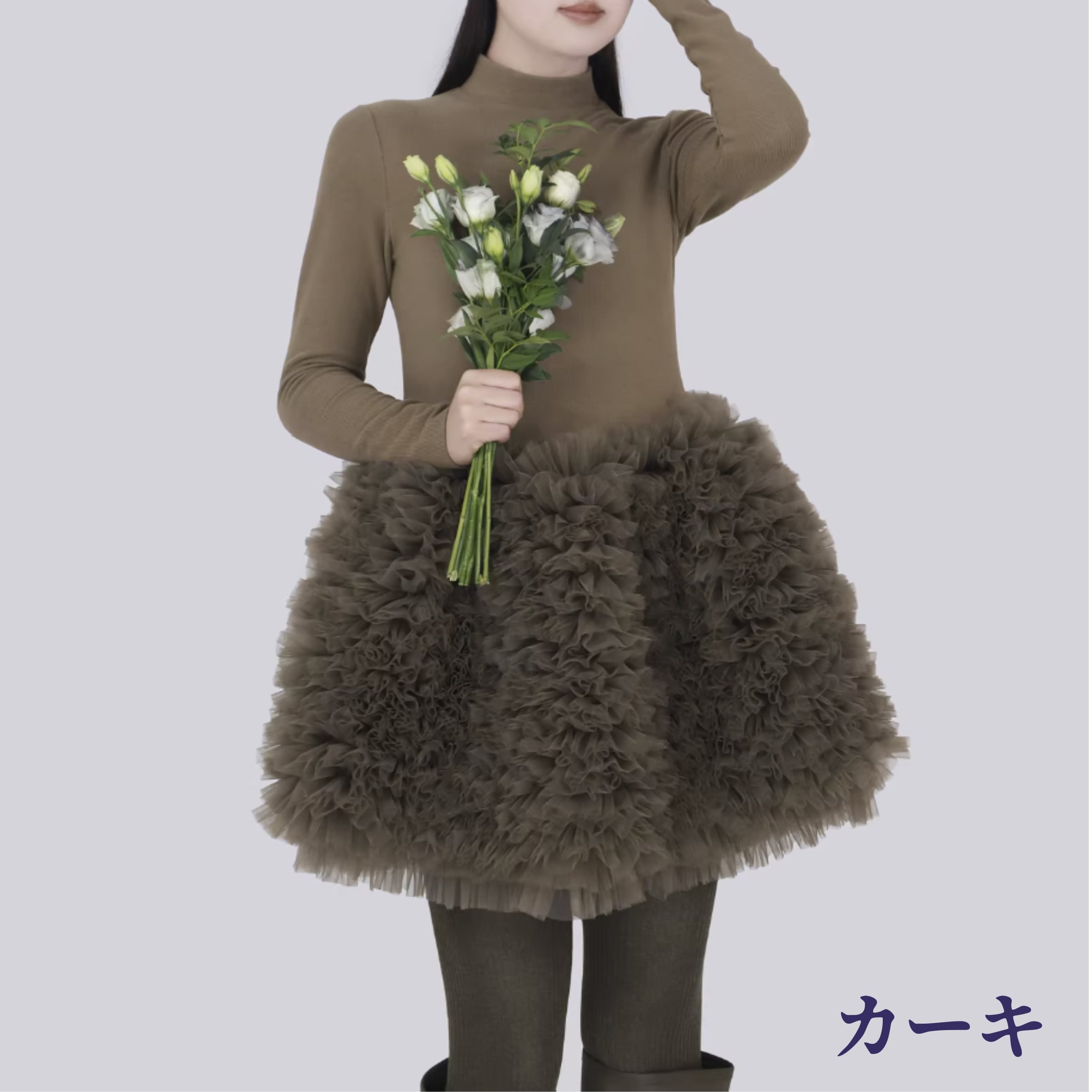 コーディネートに華やかさをプラスする、チュールデザインが可愛いワンピース。