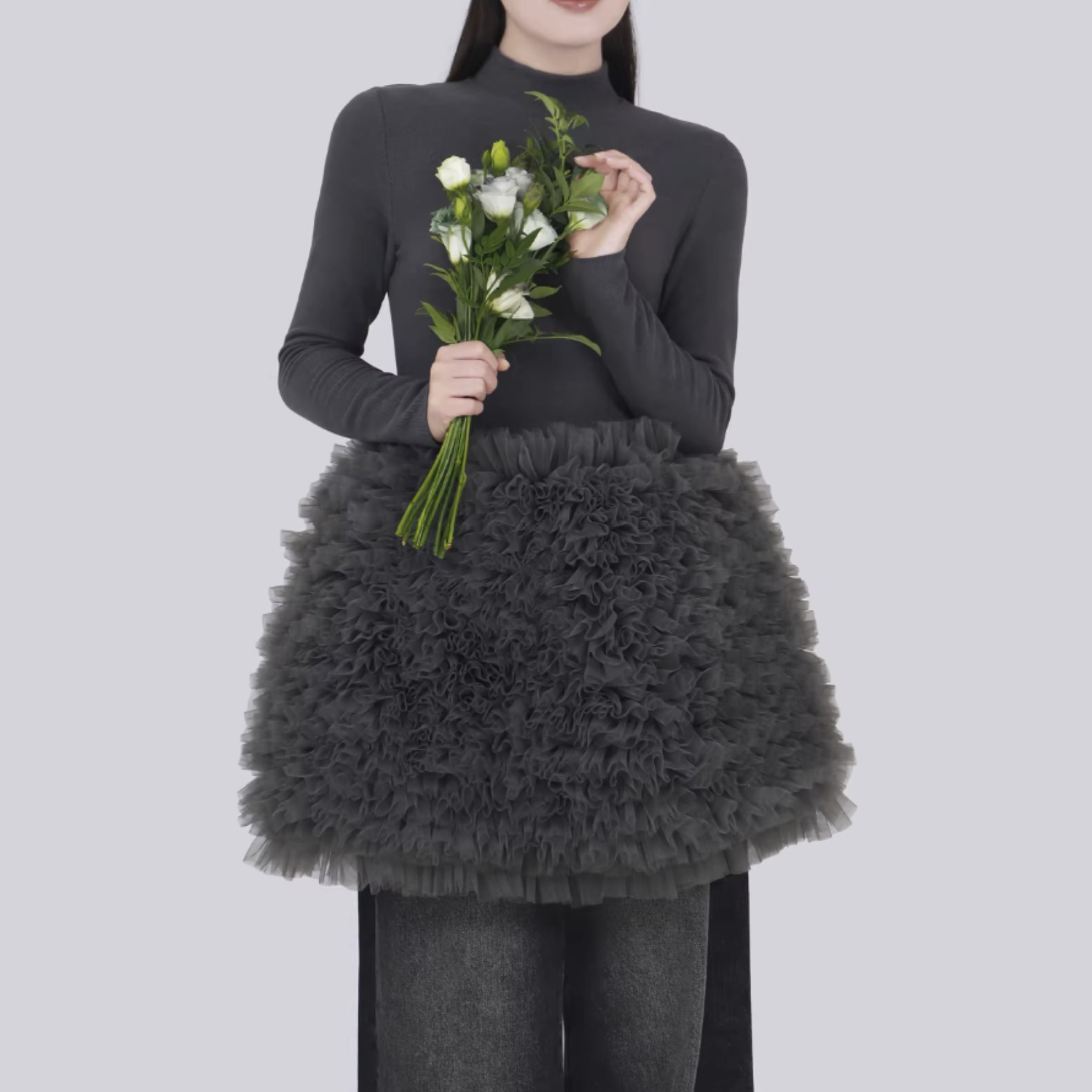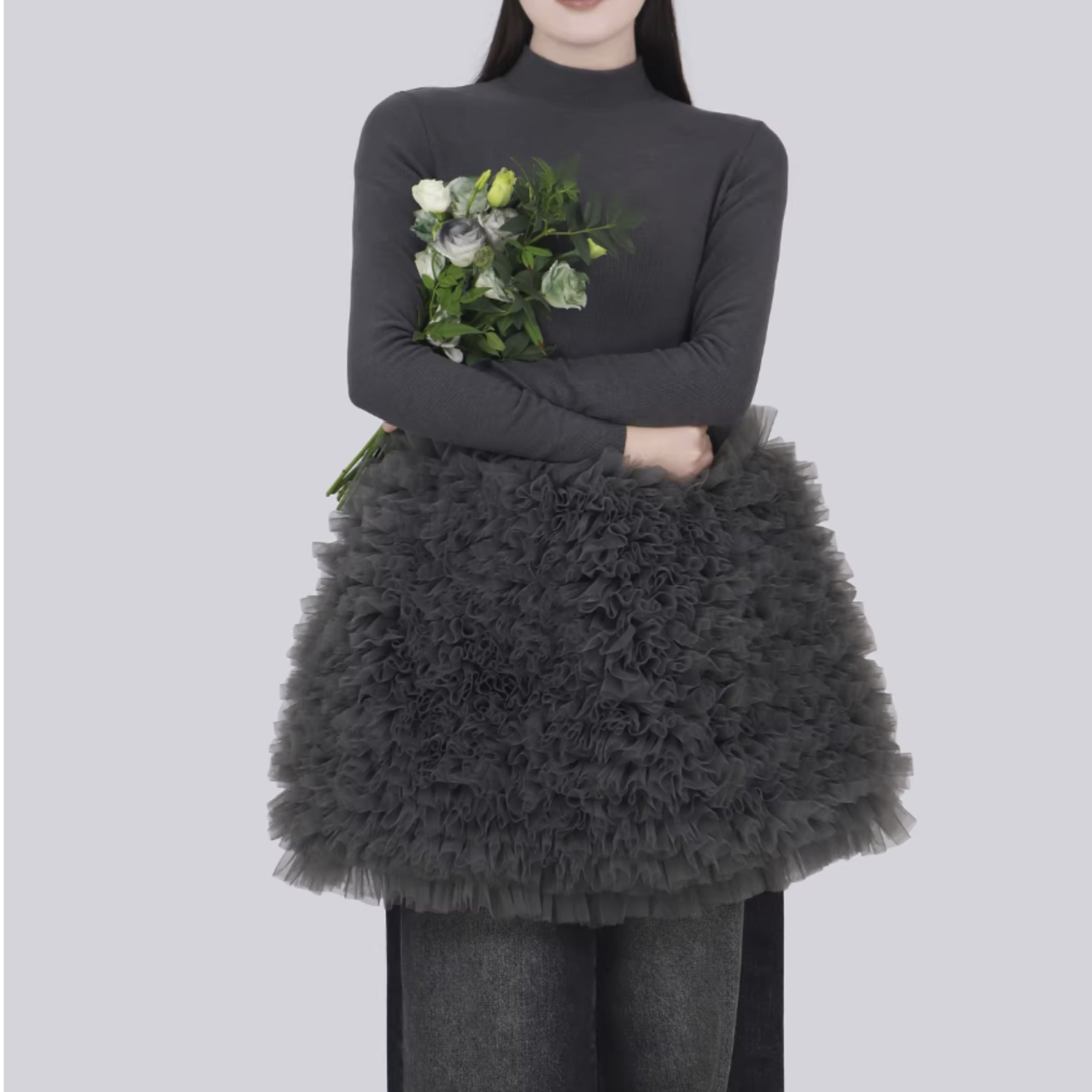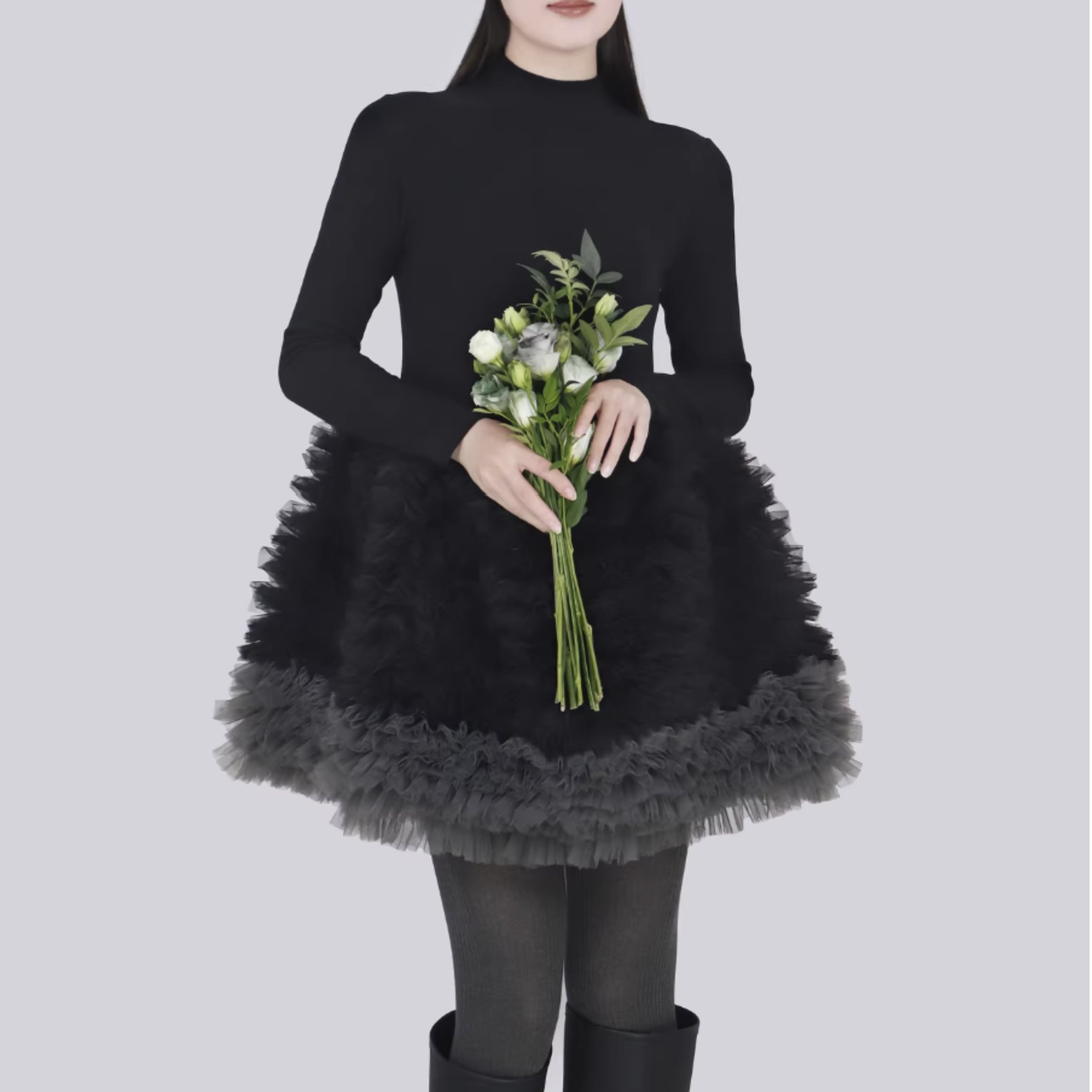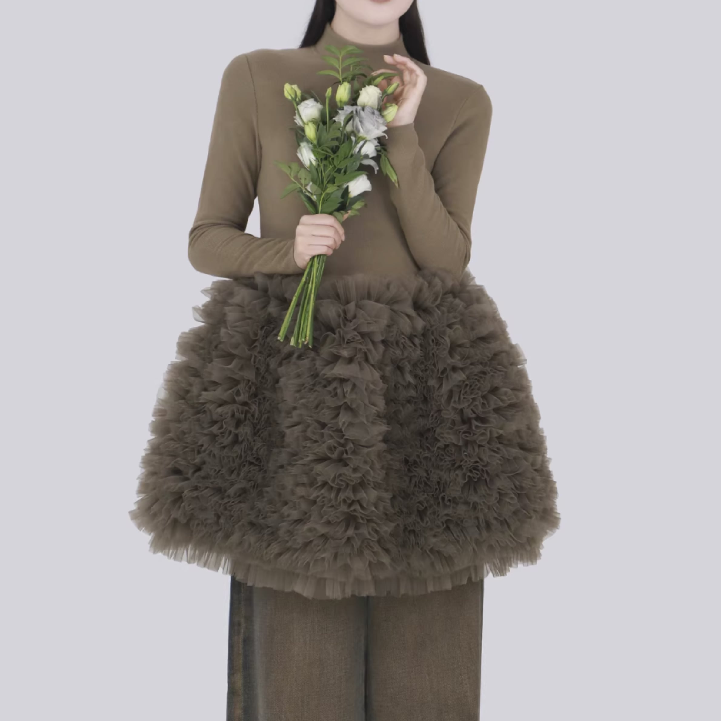 コーディネートに華やかさをプラスする、チュールデザインが可愛いワンピース。