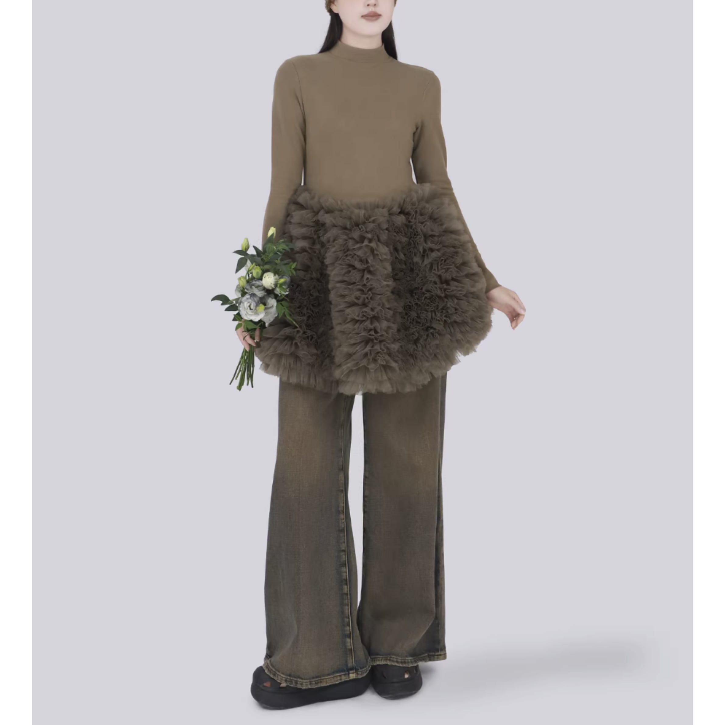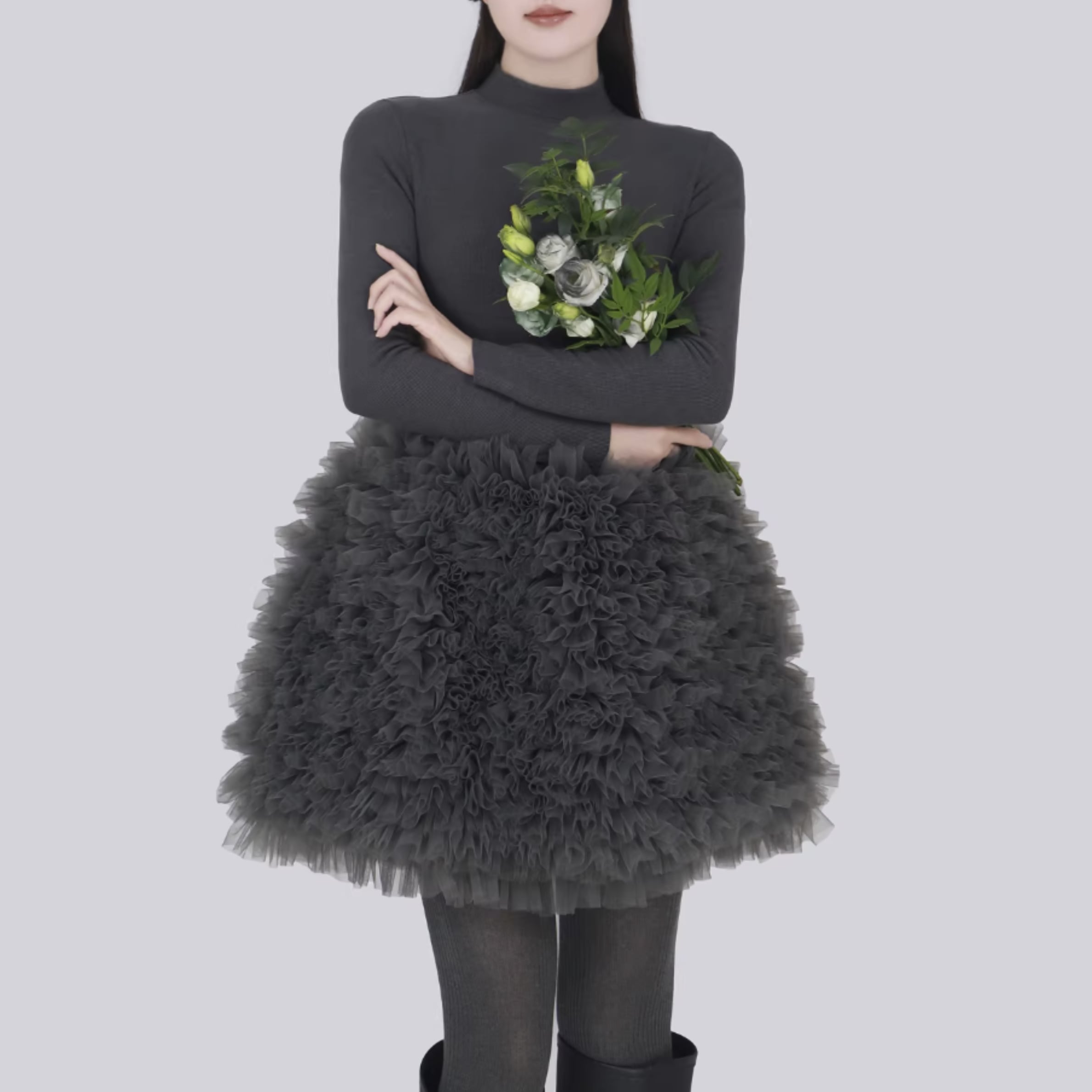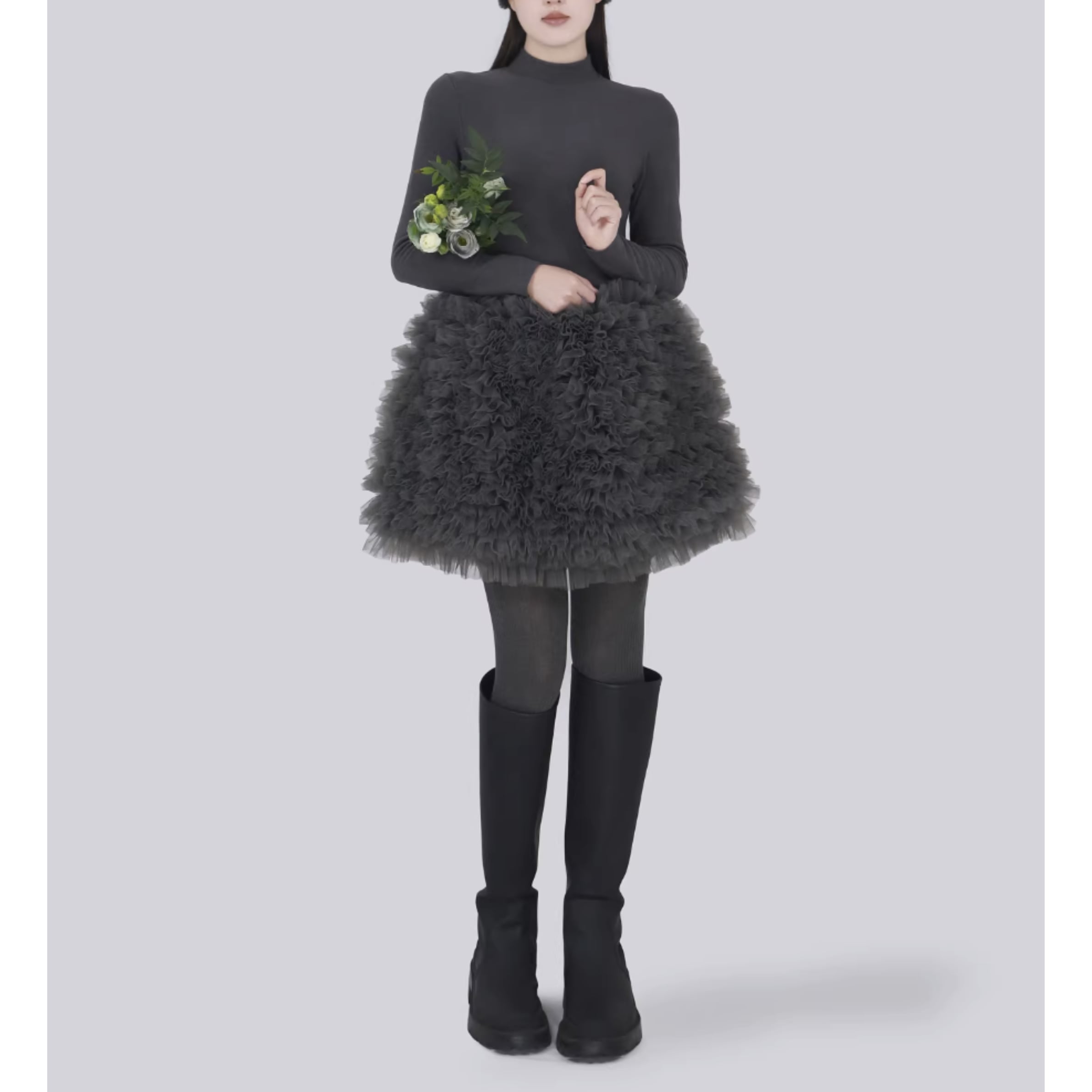 ブーツやパンツとあわせるのも可愛い。