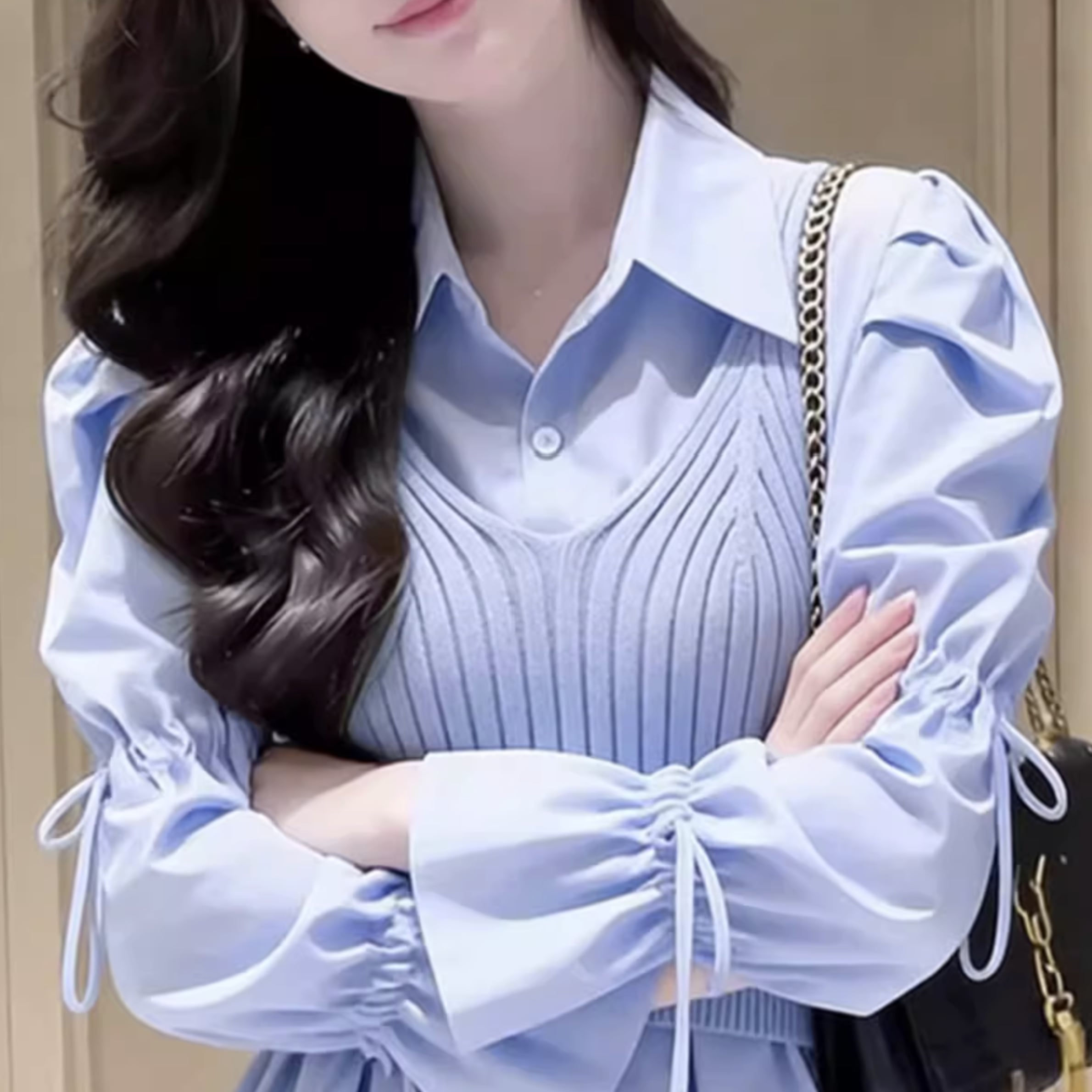 袖口のシャーリングがフェミニンな印象をプラス。