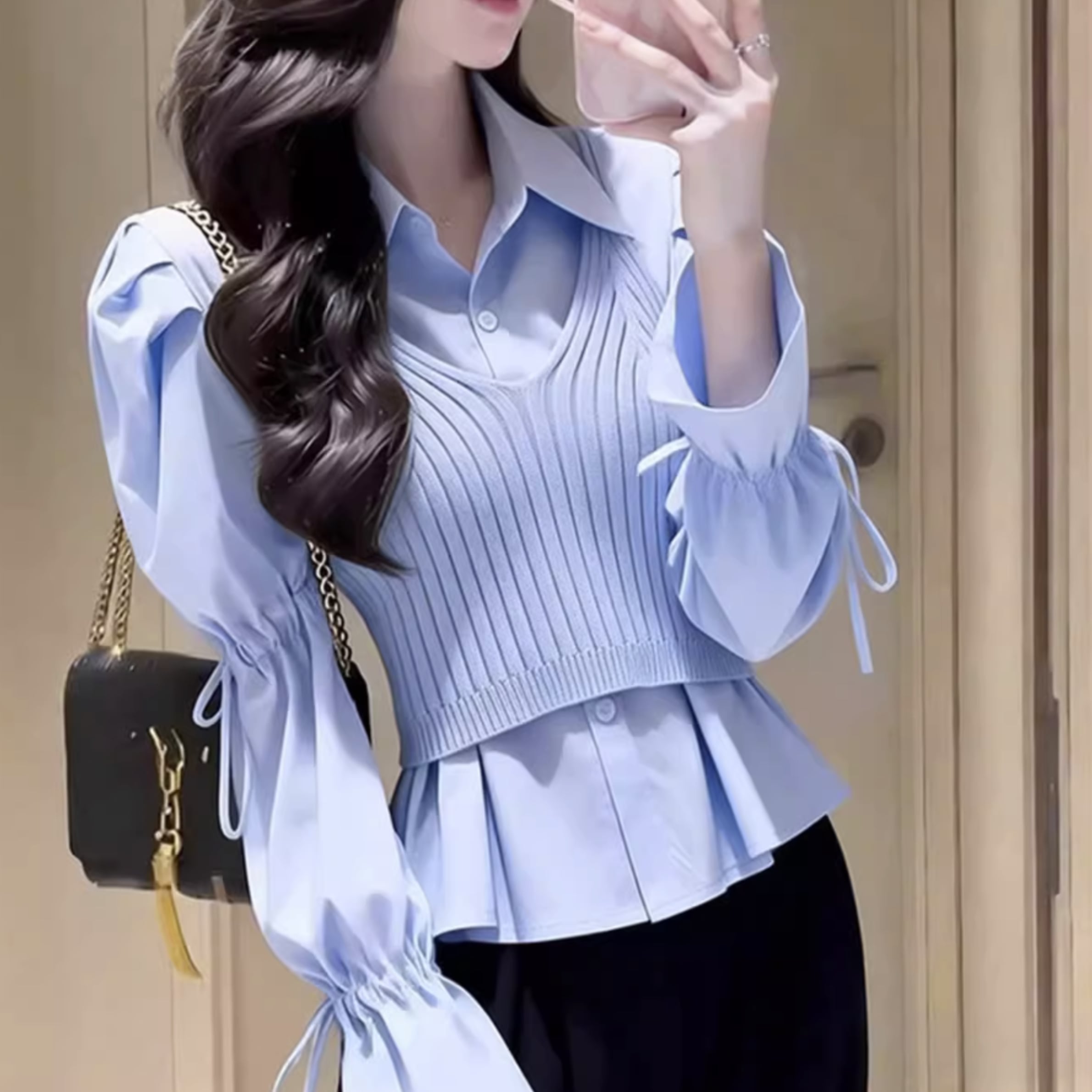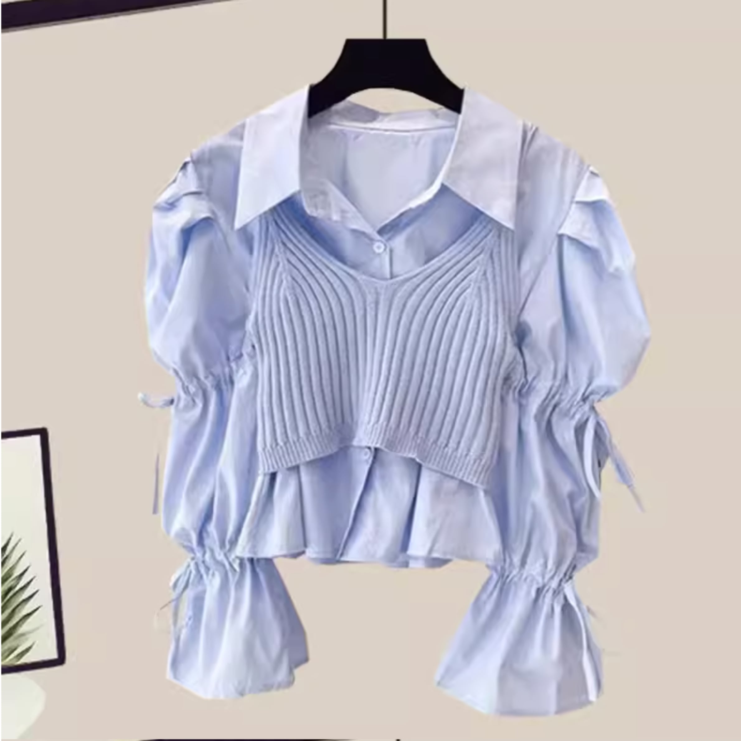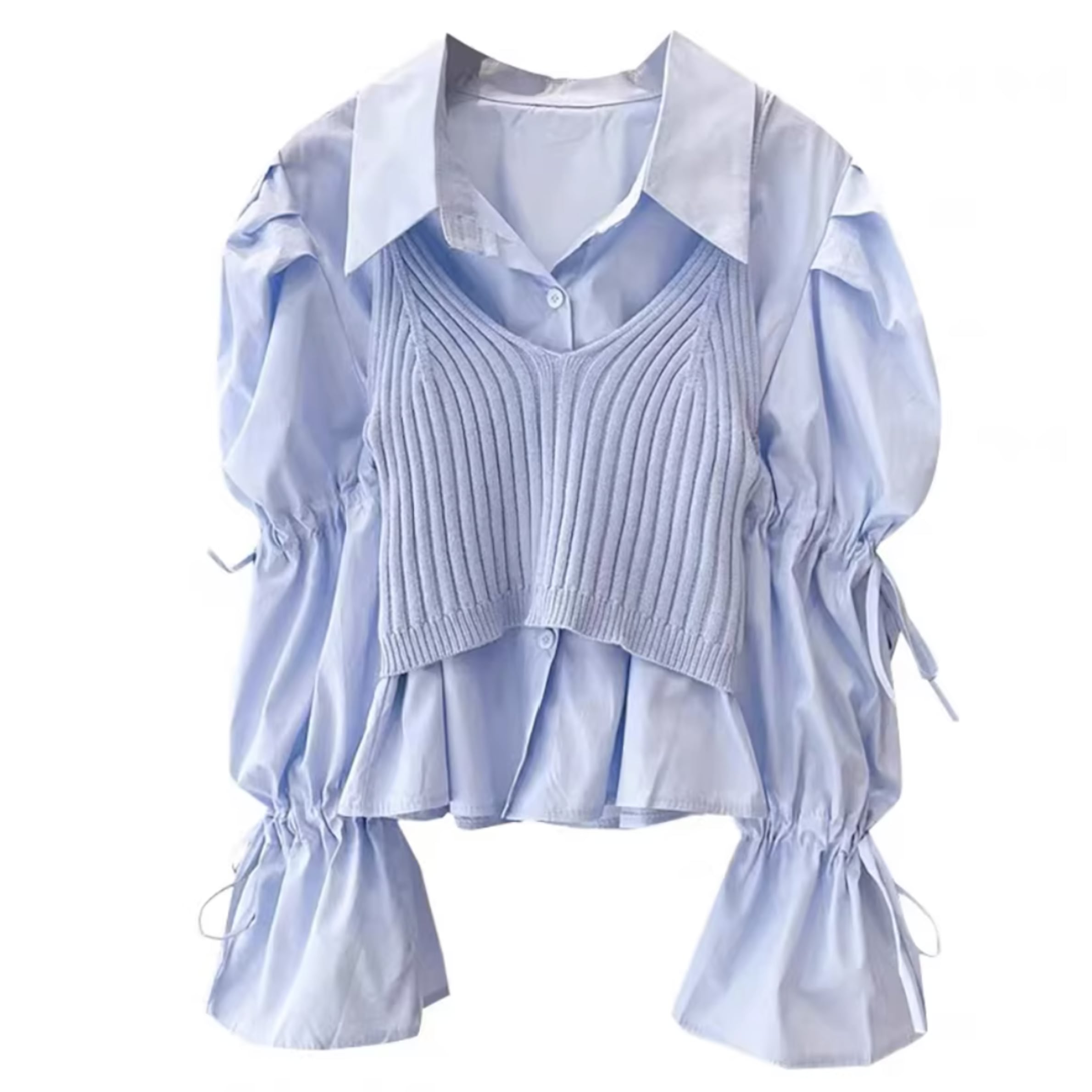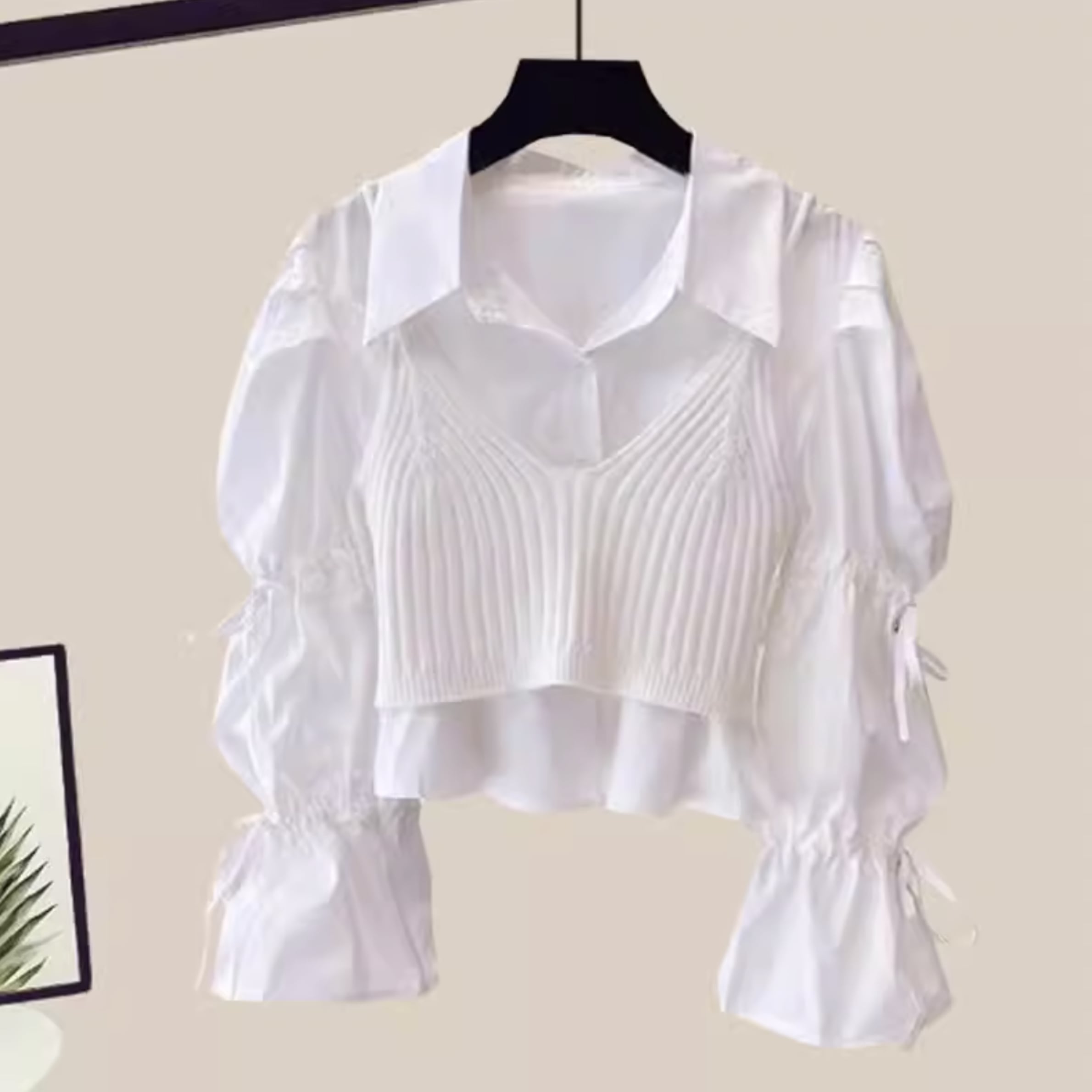 ニット風 レイヤード 長袖 シャツ r001289