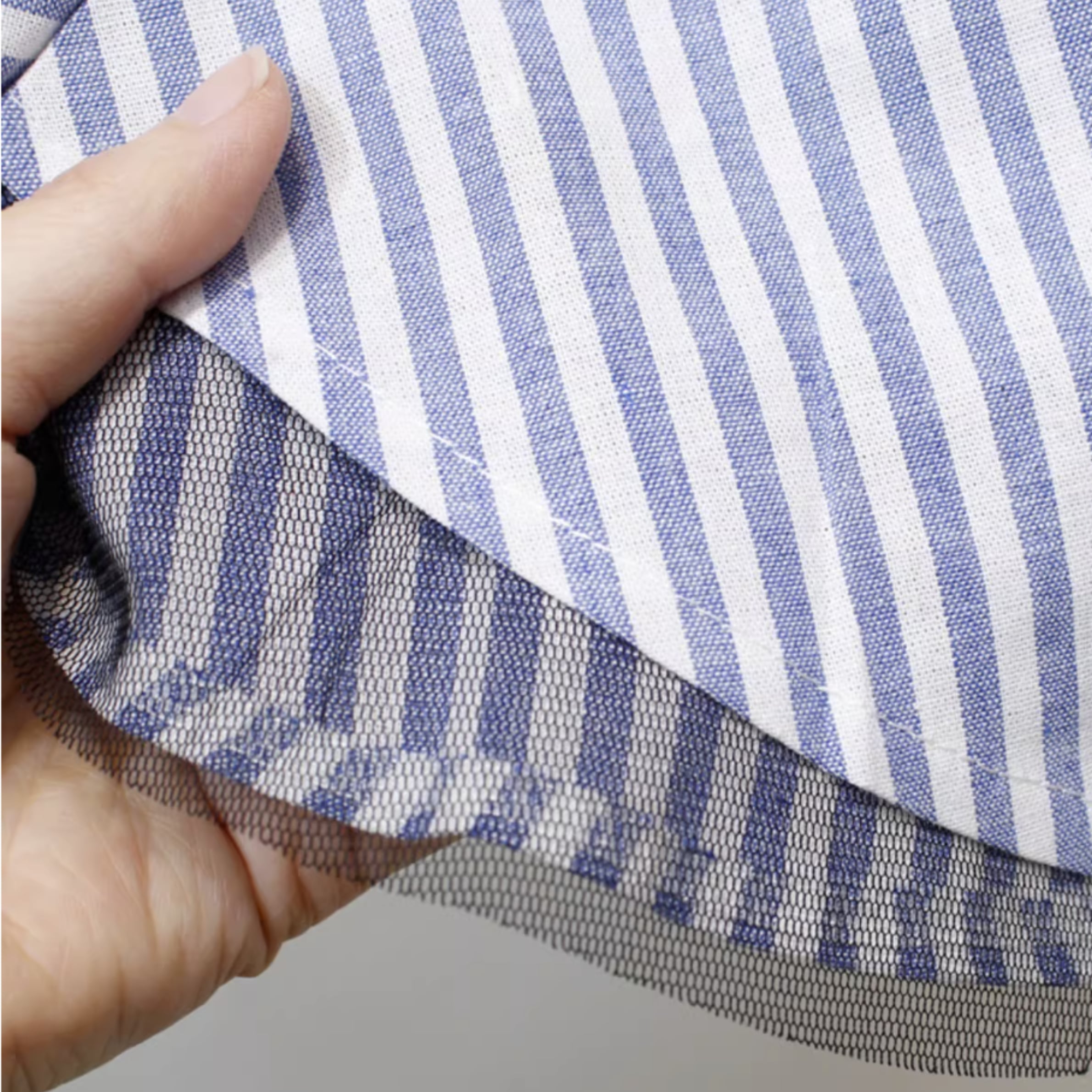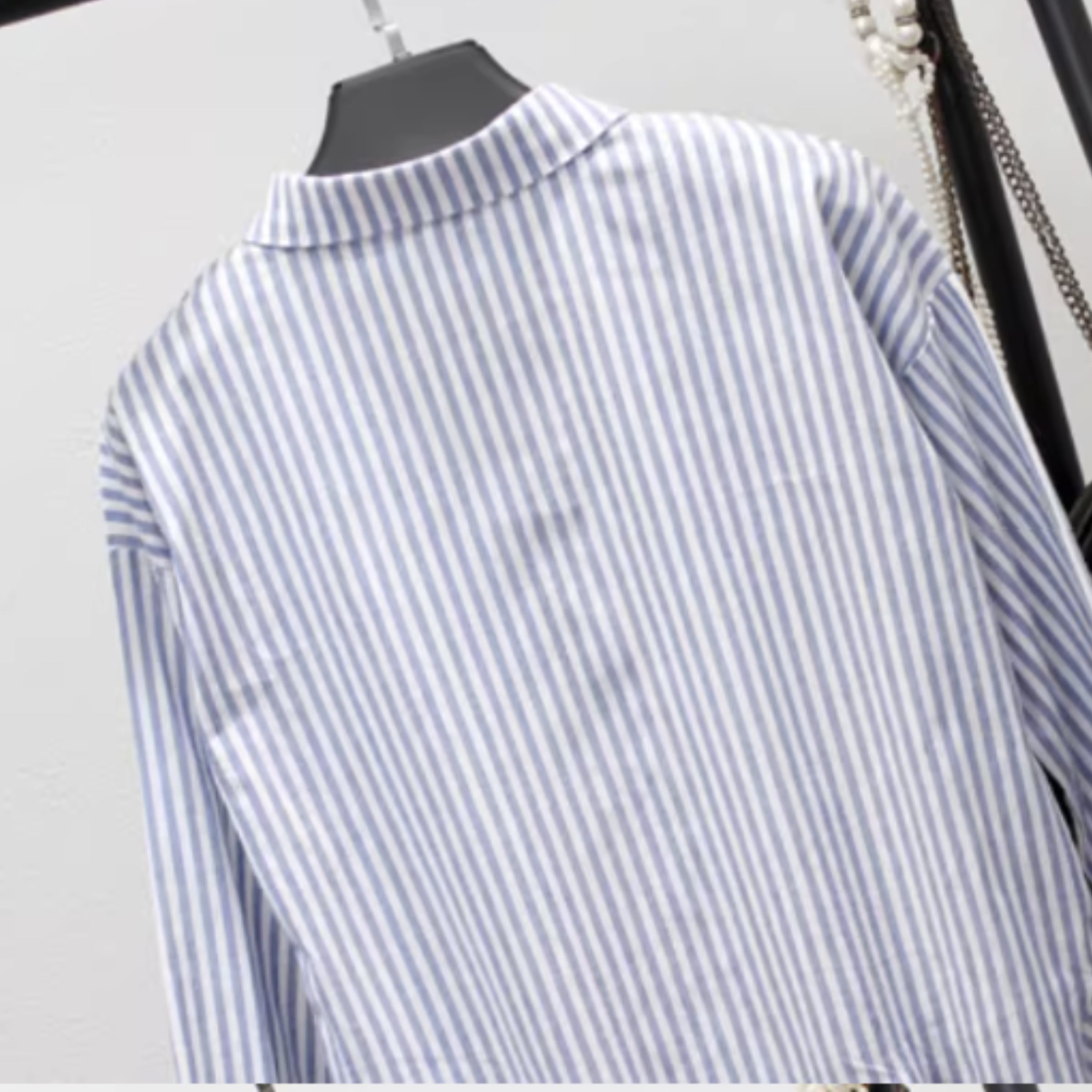 ストライプ裾チュールシャツ r001295