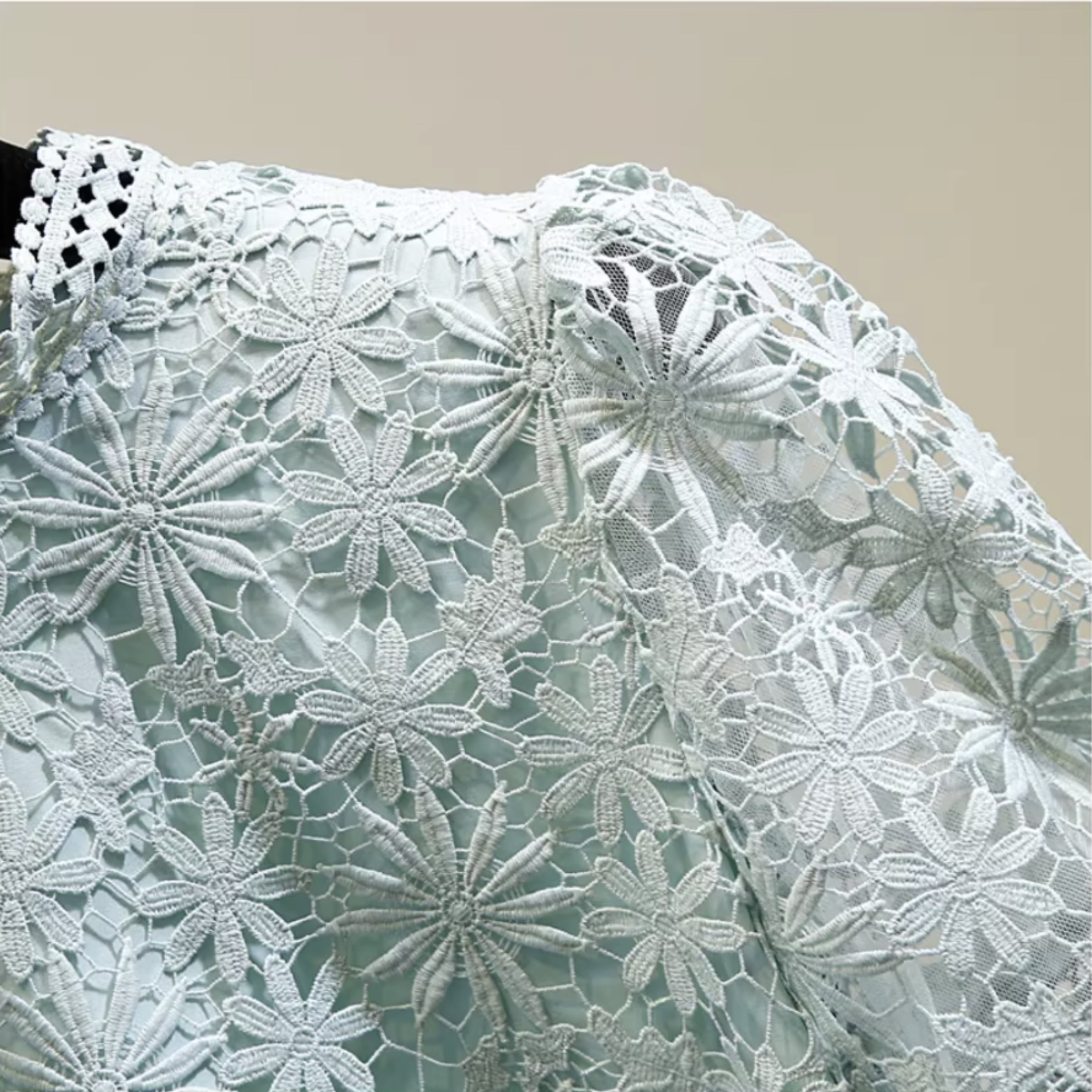 ハイネックとパフスリーブがクラシカルな印象を演出するブラウス。繊細なレースのデザインが、上品で華やかな雰囲気をプラスします。パーティーシーンはもちろん、カジュアルな装いにも合わせやすく、着回し力抜群です。