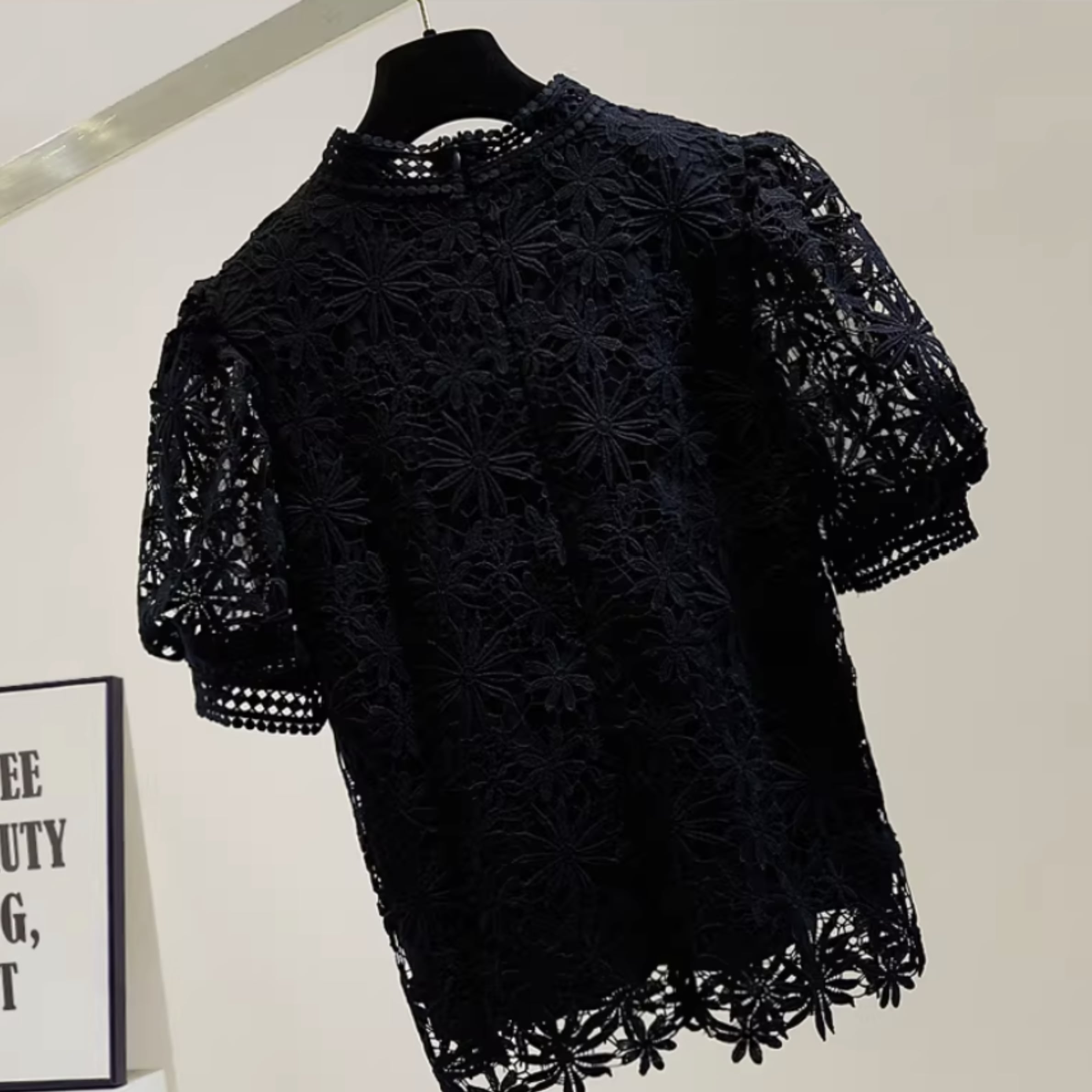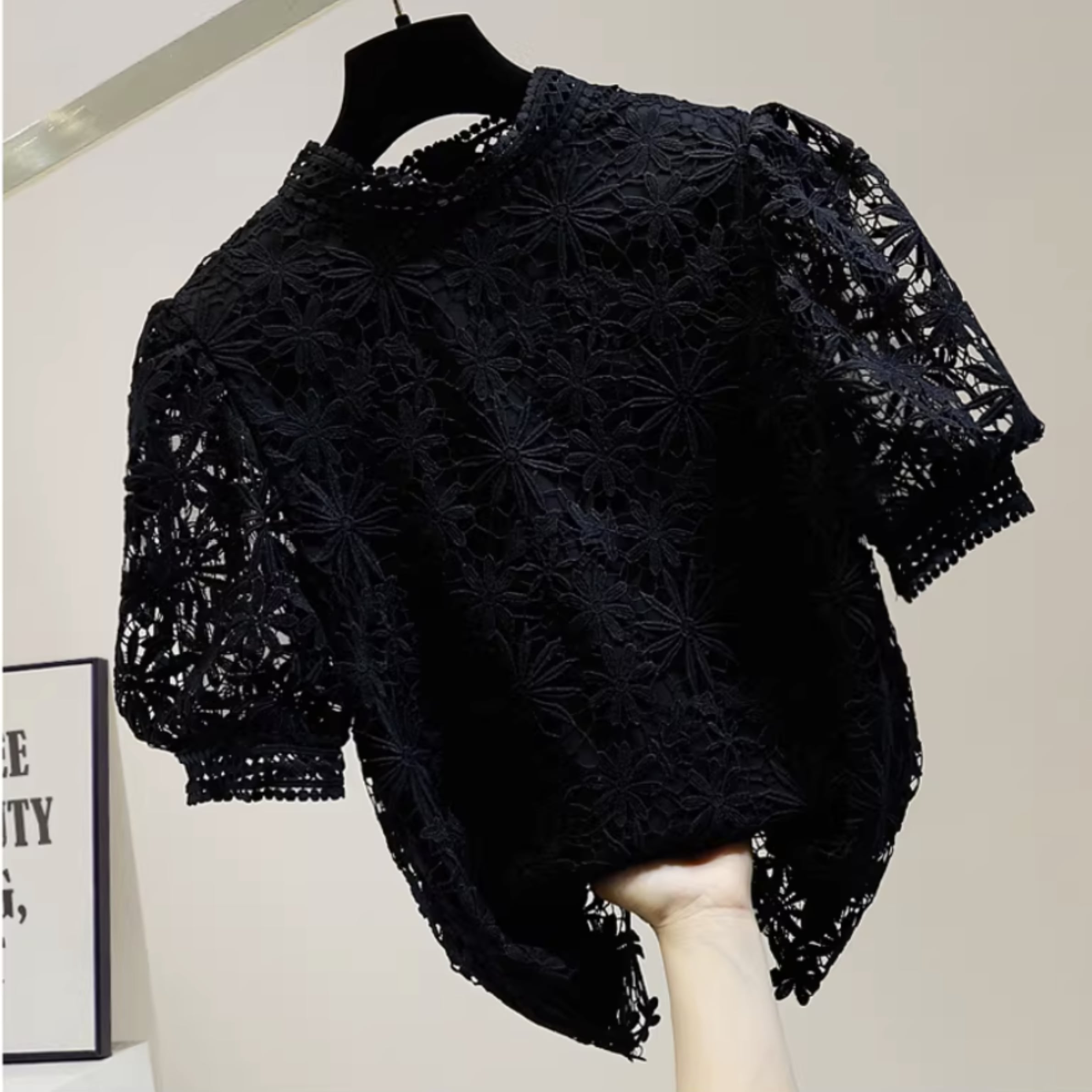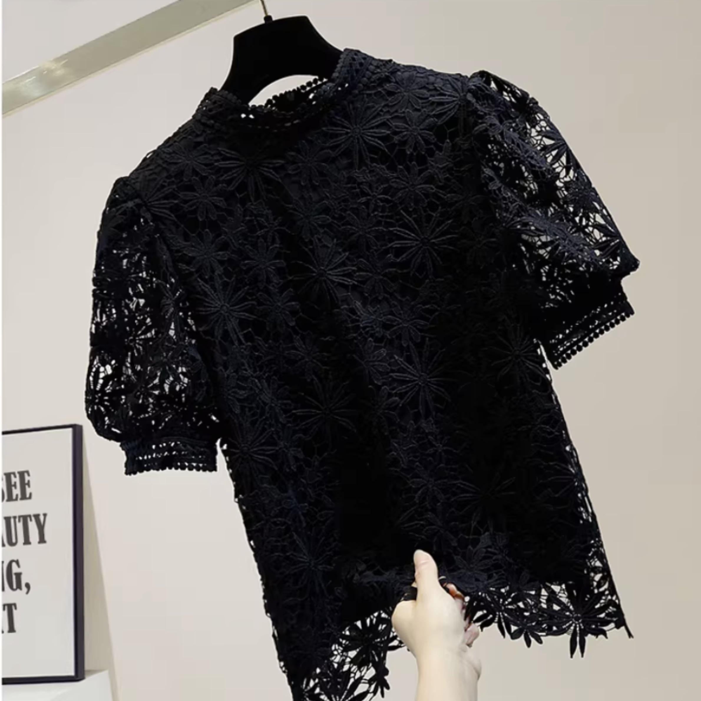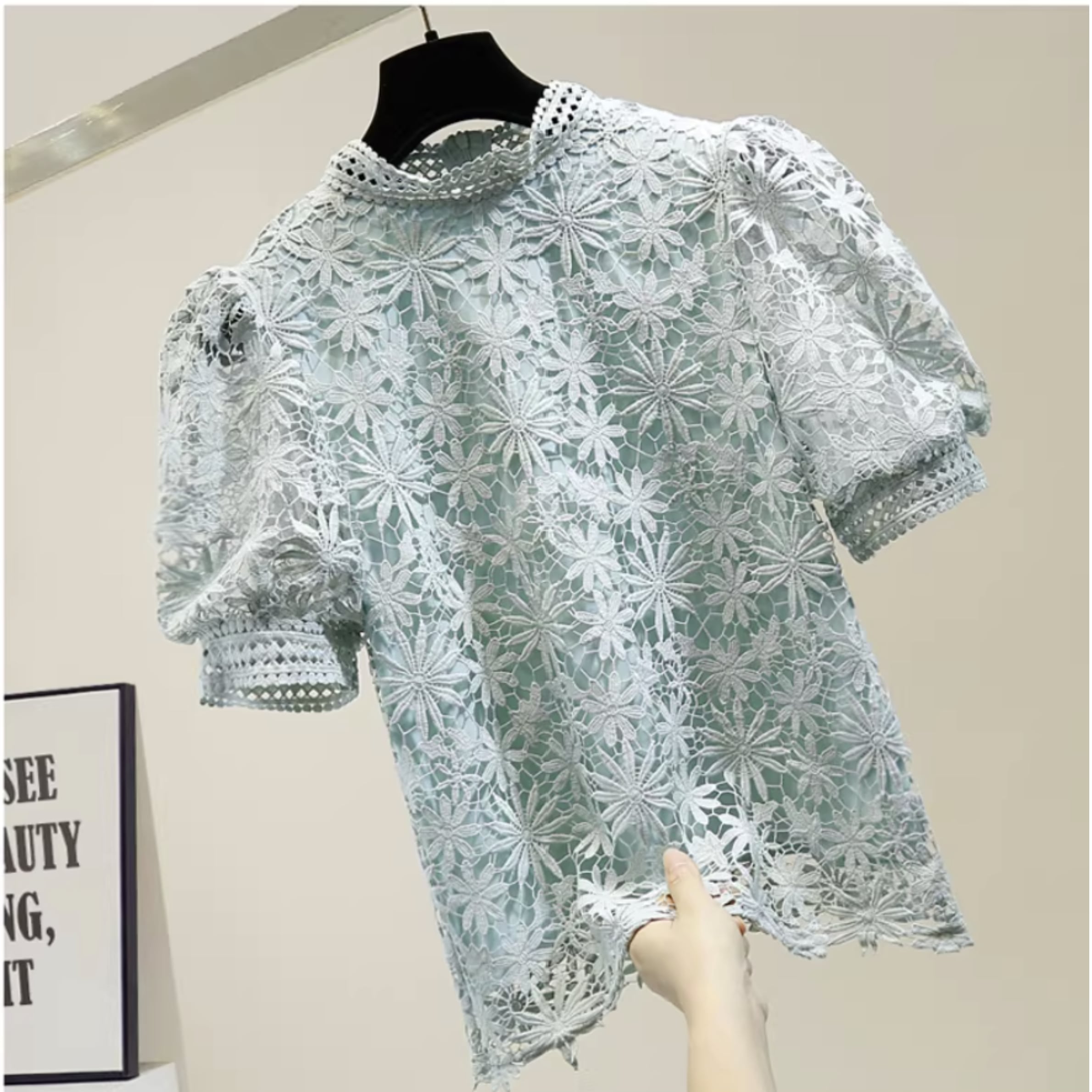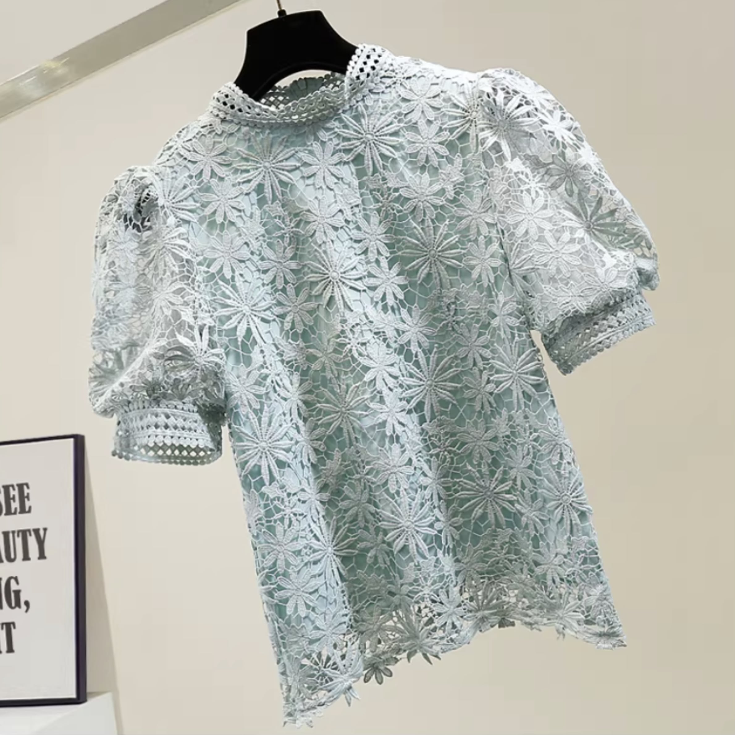 フラワーレースパフスリーブ トップス r001298