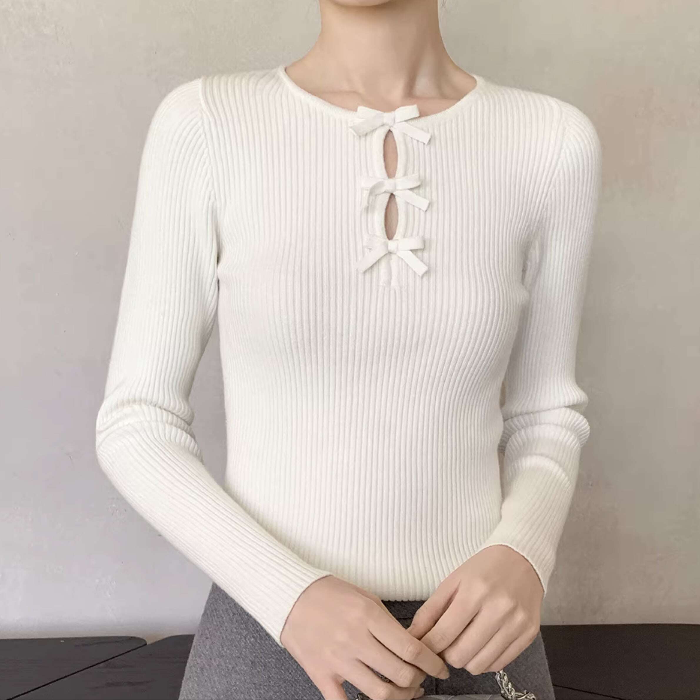 インナーとしても、ちらりとのぞかせるフリルが控えめなのにしっかり可愛いニット。