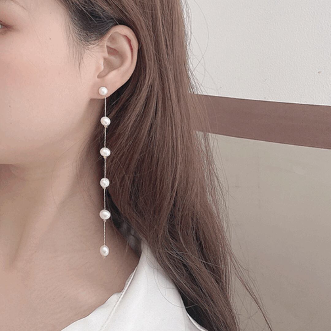 上品に揺れるフェイクパールが美しいピアス。どんなスタイルにも合わせやすく、一つ持っているとどんな場面にも使える頼もしいアイテムです。