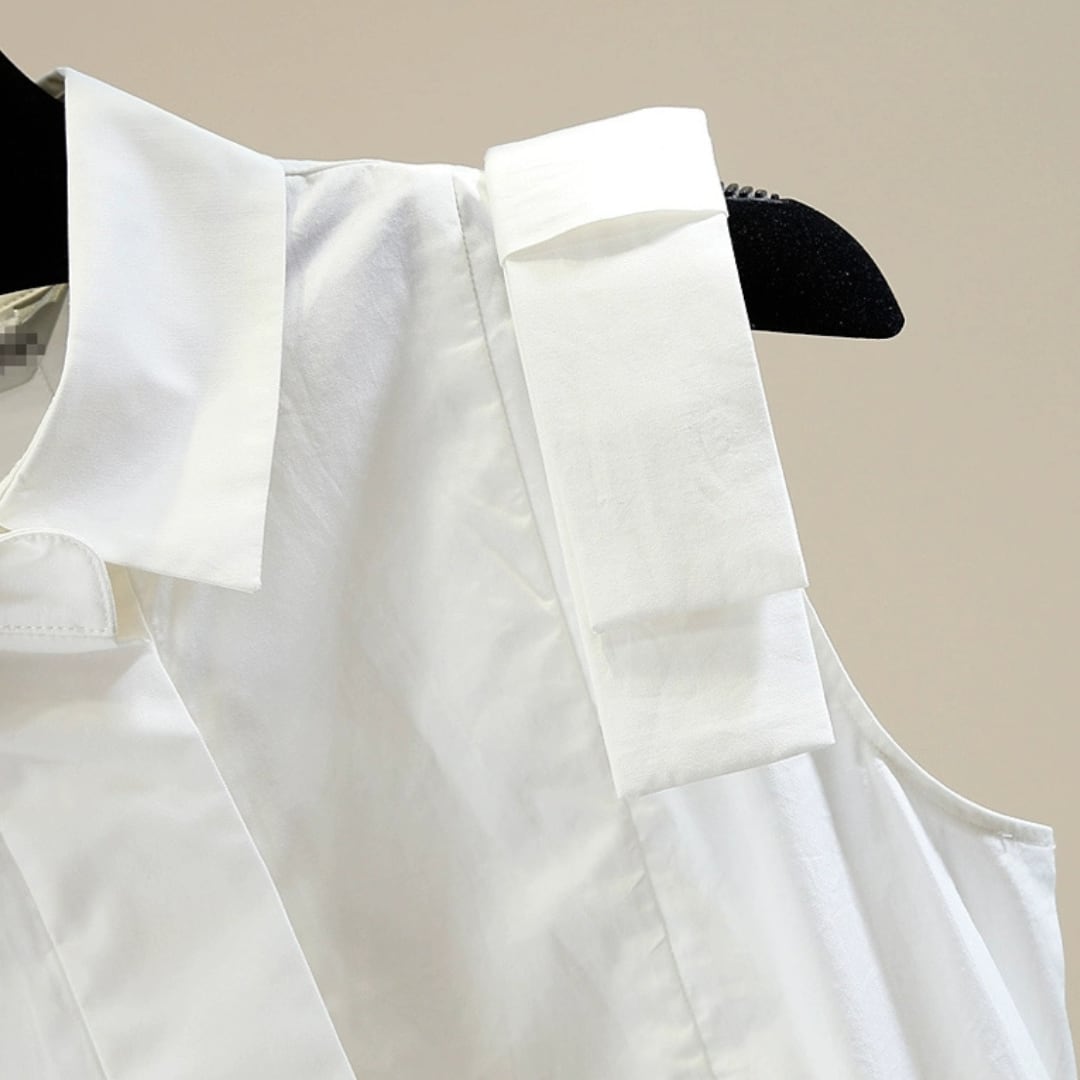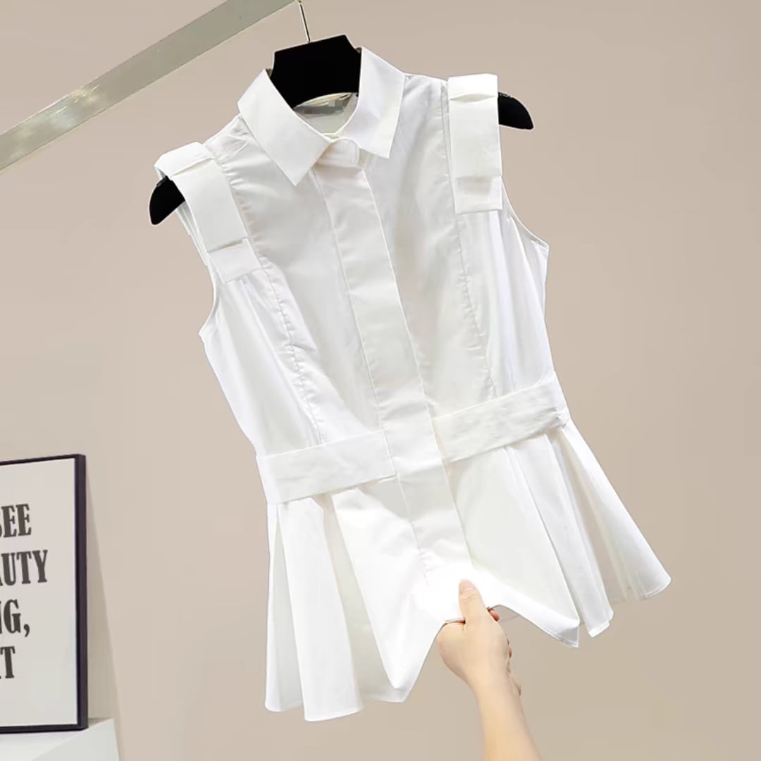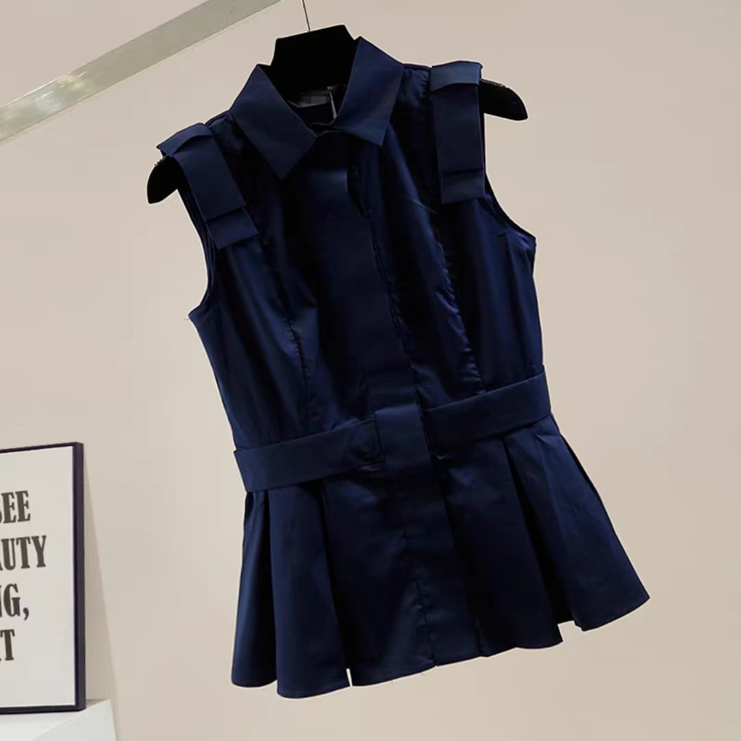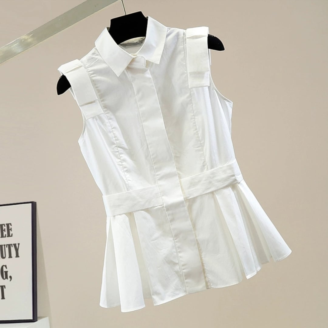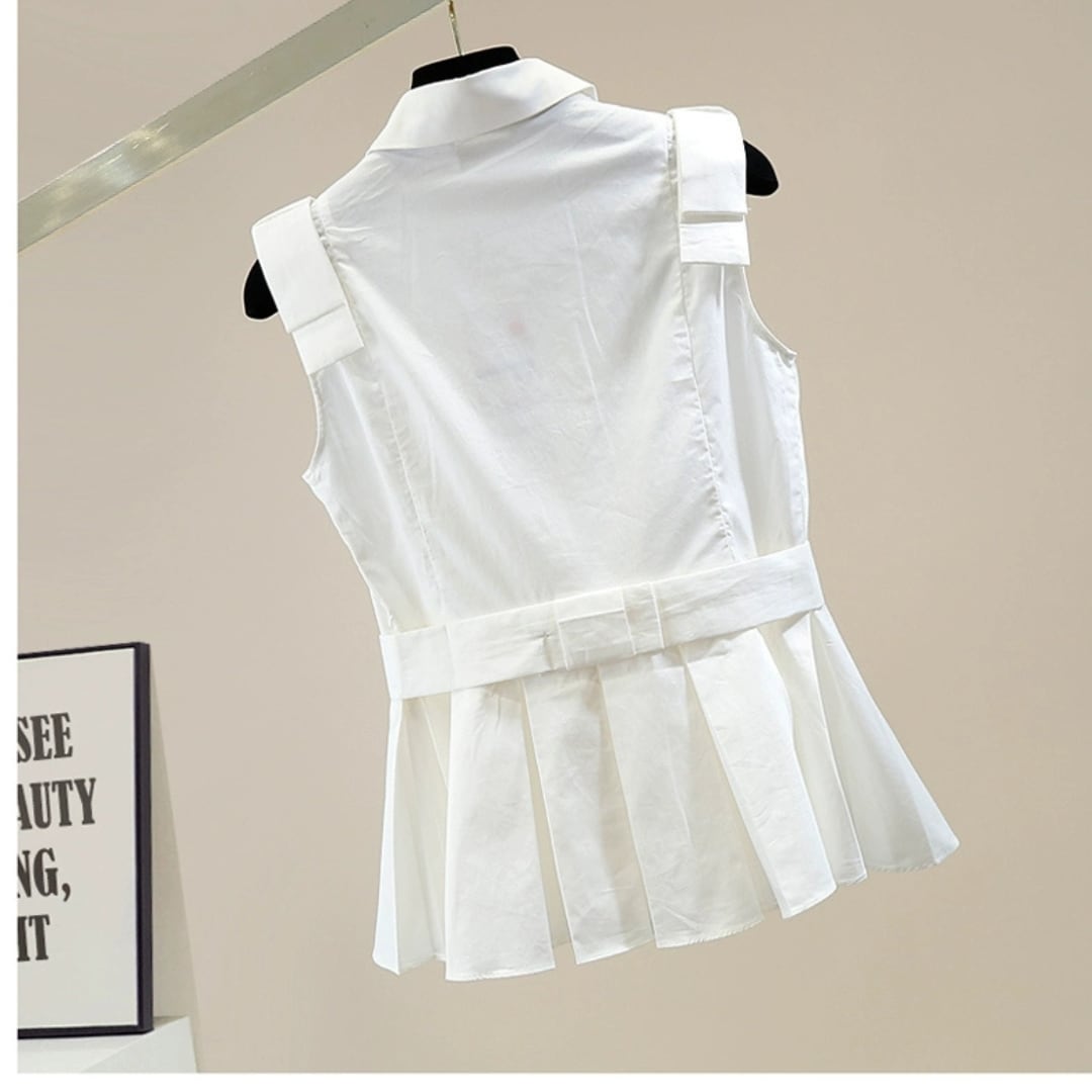 プリーツフリルノースリーブブラウス
