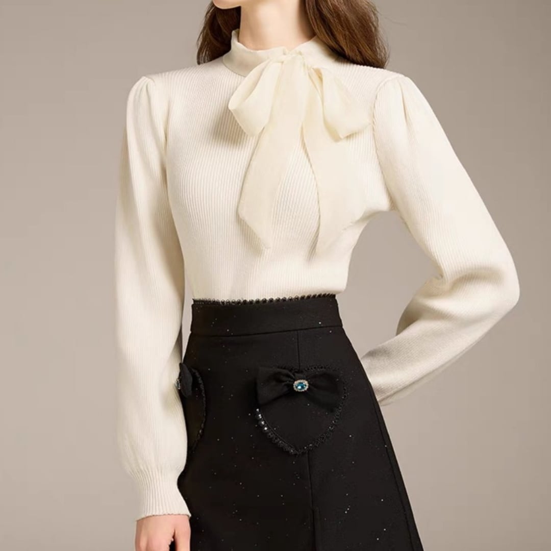 リボン襟ニット