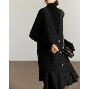 フレア切り替えツイードジャンパースカート