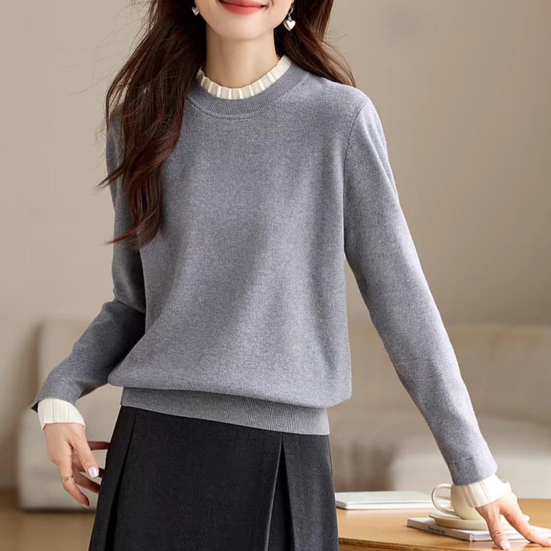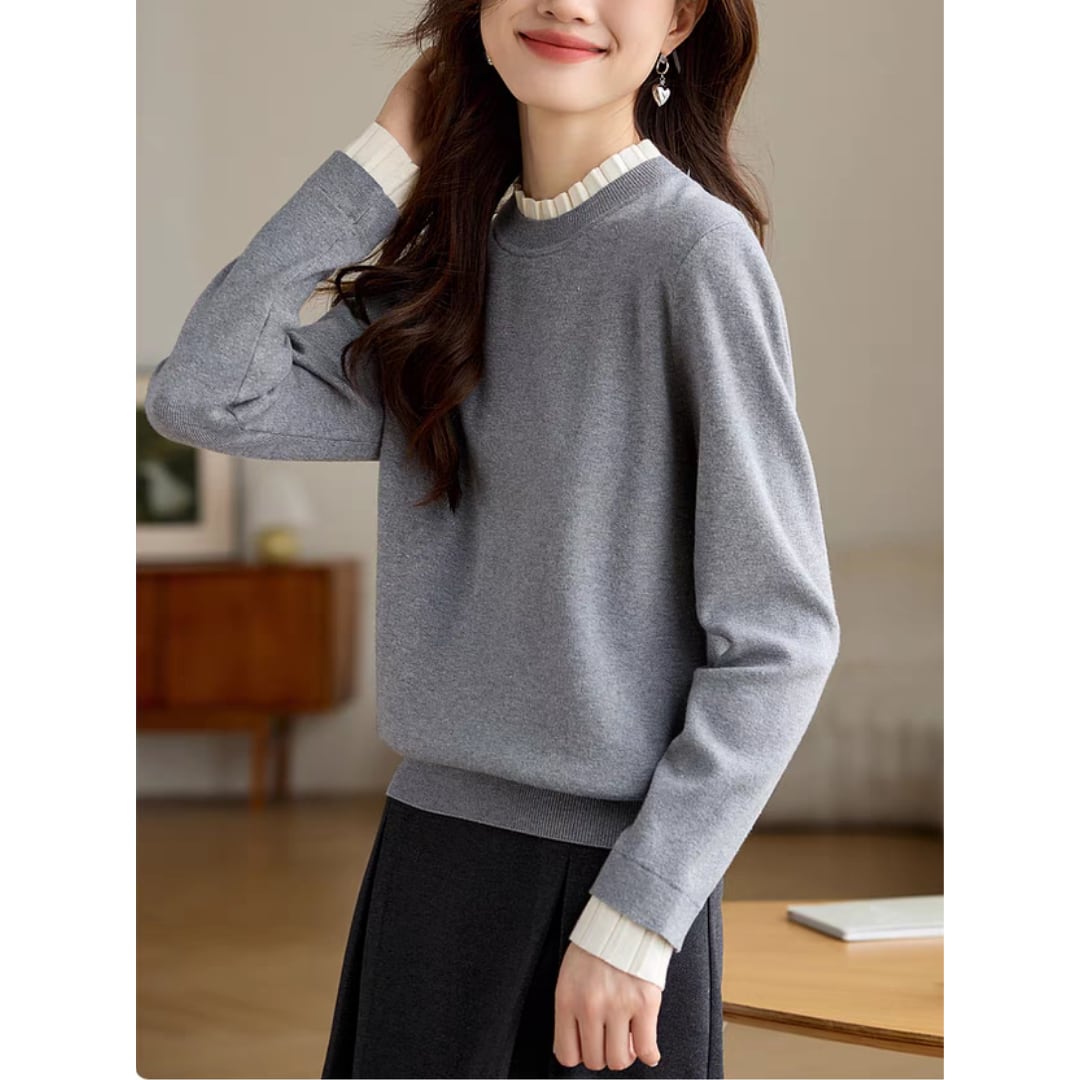 フリルラウンドネックニット