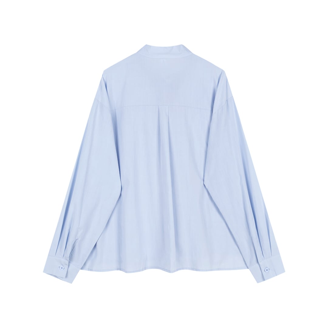 ボウタイがアクセントになったロングスリーブシャツは、バルーンスリーブが女性らしいシルエットを演出